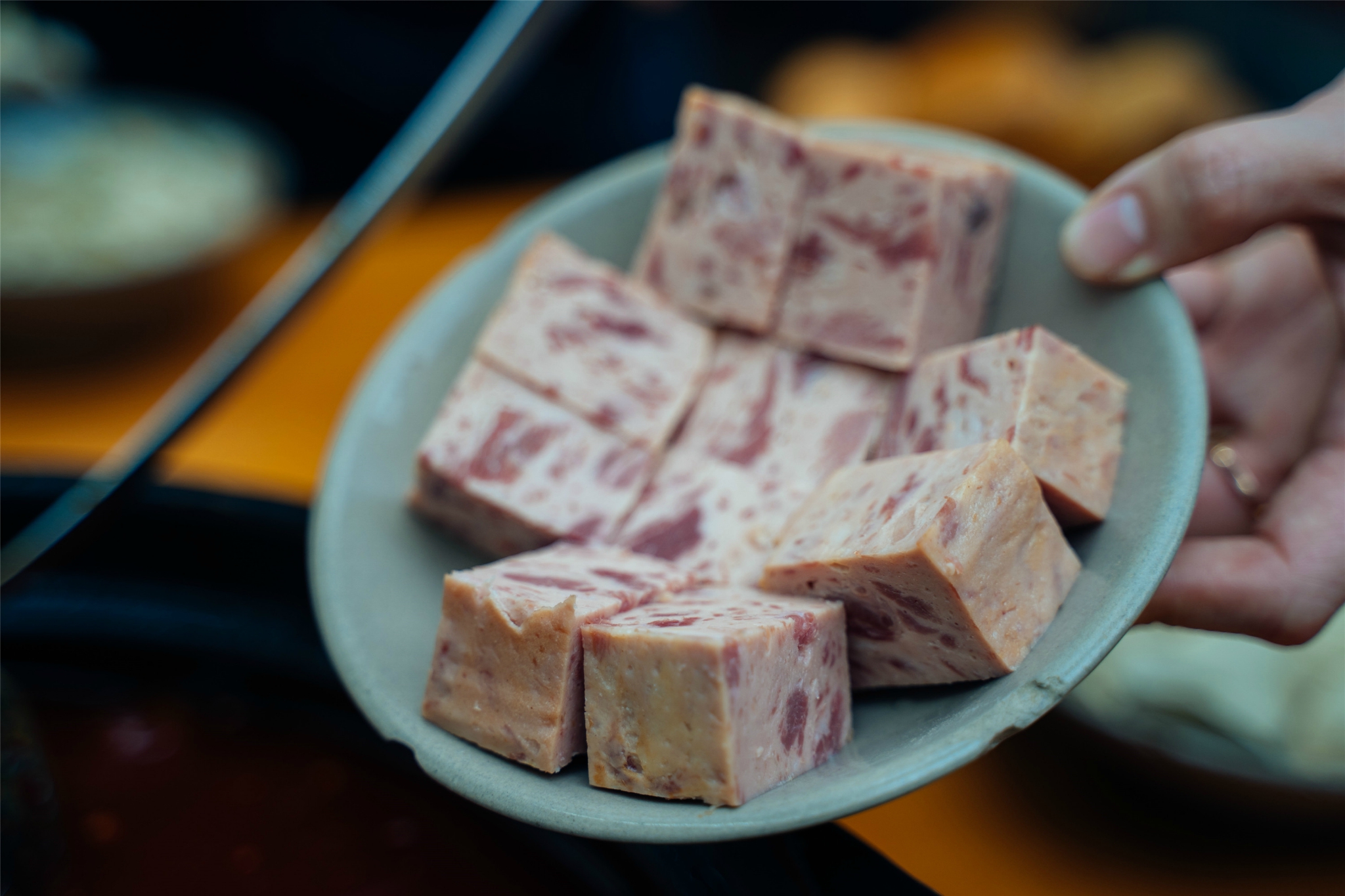 ✨「特制午餐肉」评论里人气很高的午餐肉也很不错,有颗粒感十足的肉里,一口咬下去,口感还是蛮丰富的,但还是牛排最入味好吃。我超喜欢他们家的牛排。