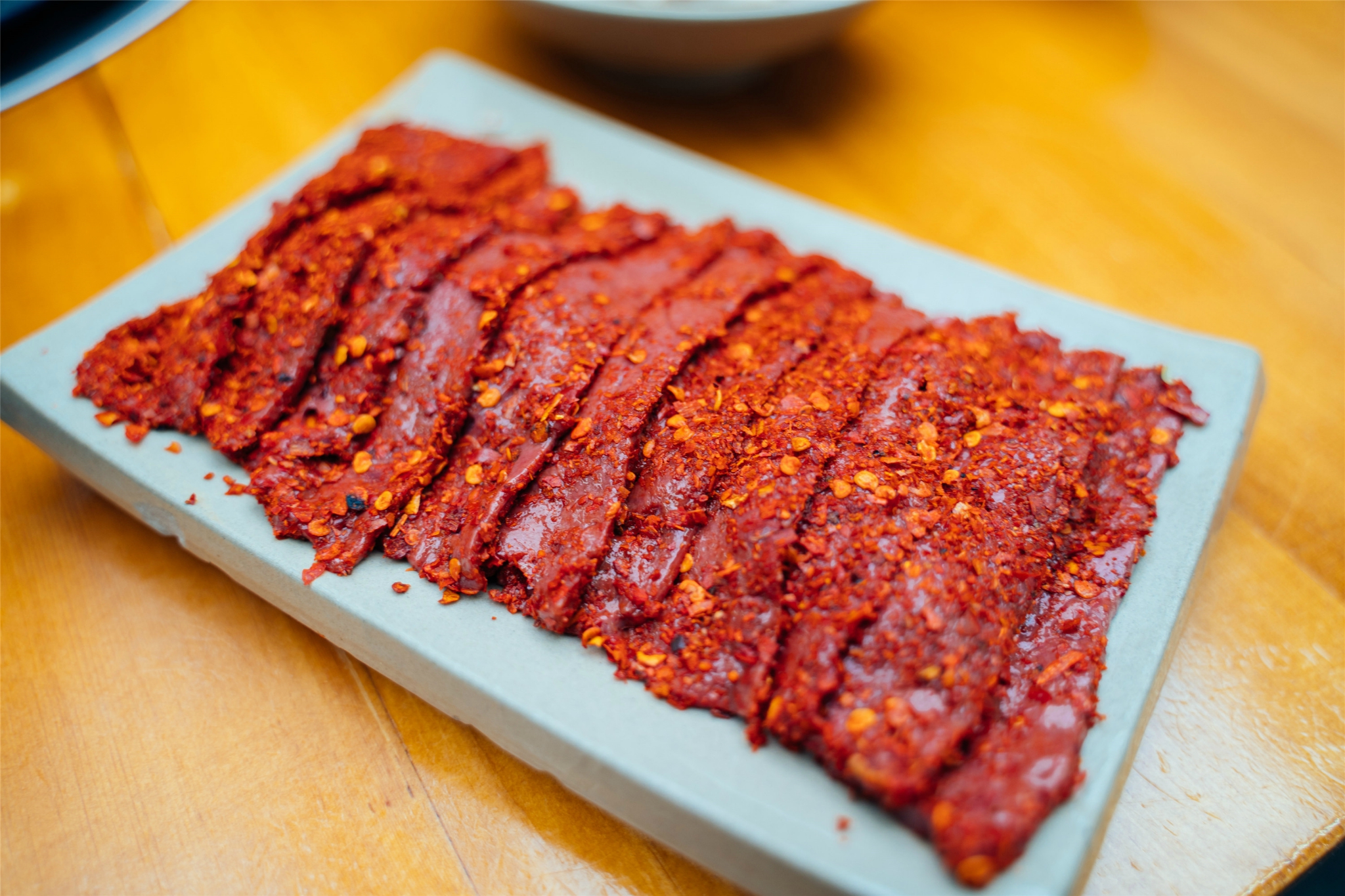 ✨「牛肝片」火爆,牛肉的色泽看起来就很新鲜,处理得当的牛肝在火锅里稍微煮一下,捞出来又滑又脆。