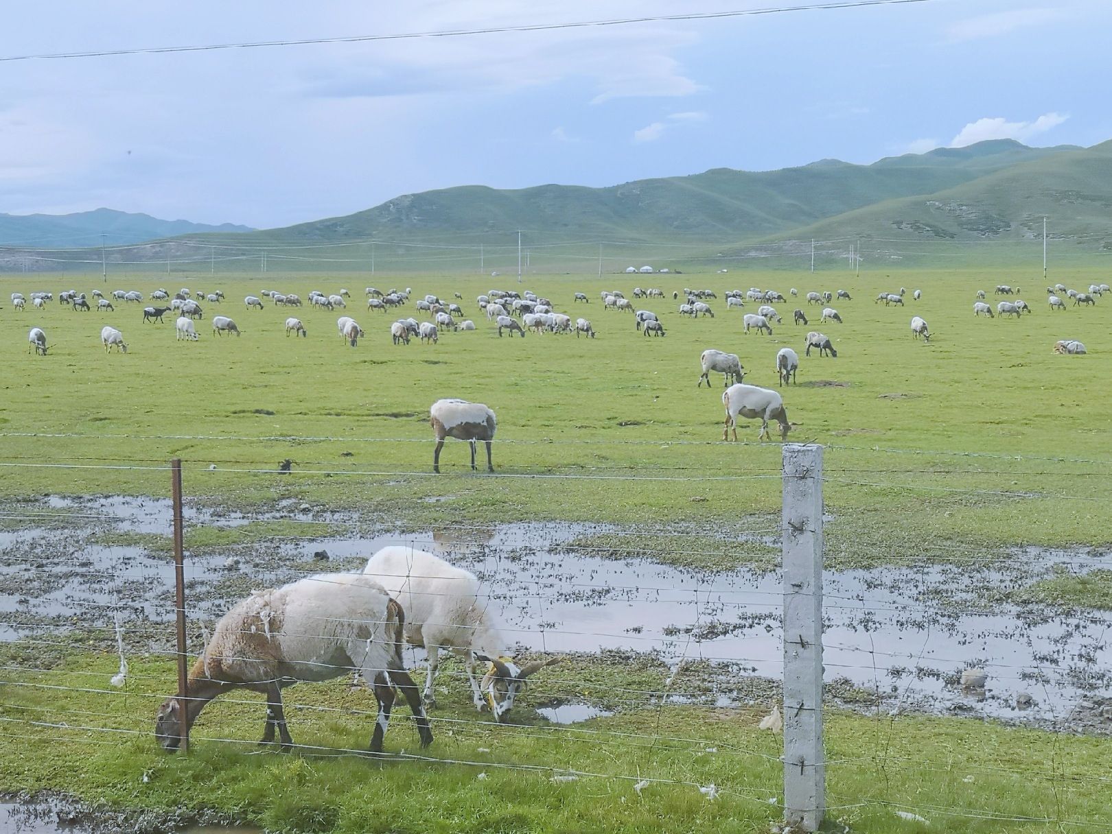 3.这一段无导航。沿着热尔乡这一条路往前走,看见一段分岔路,左边是一小段过河桥,就走这条路,然后就一直沿着这条路走,这条路用时比较长,至少六七十公里路吧,沿途走着走着就盘山而上,中途小心会车,路比较窄。如果路途还是不太明白,可问当地人“花湖”怎么走,当地人都知道的。到了花湖,你会发现这一路的风景比桑科草原还要辽阔和美腻,可停留在这里吃顿饭休息休息,享受下美好大自然的气息,路旁的草原里还有土拨鼠噢。