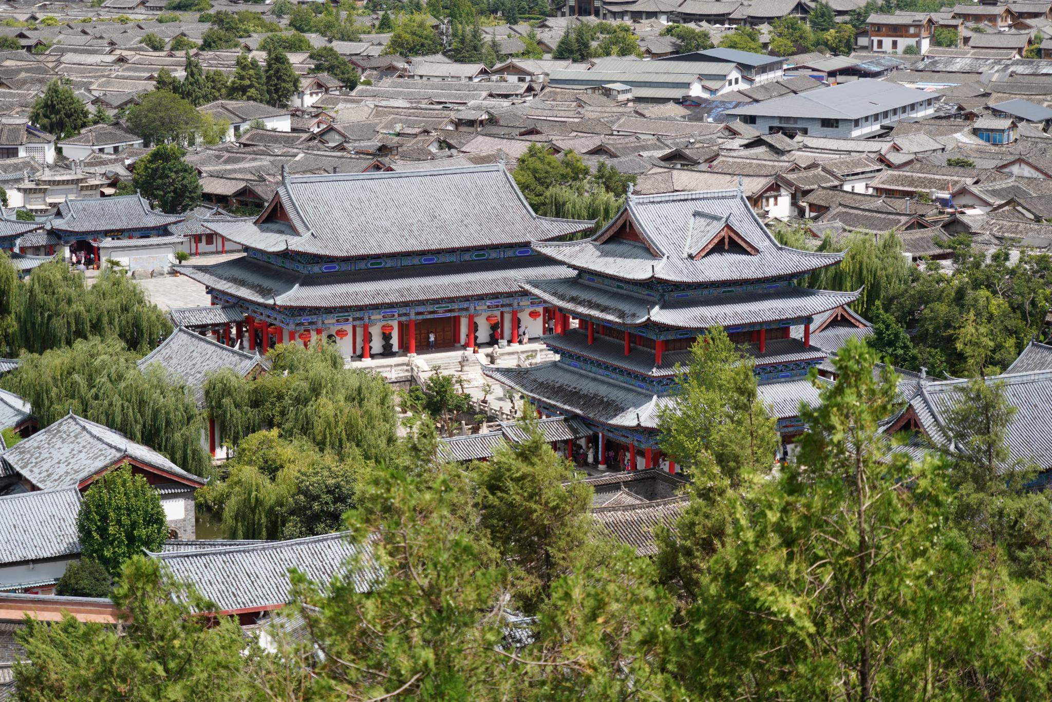 一开始还没计划好下午去哪里,攻略看了看说推荐去狮子山观景平台,于是我们就去了。。到狮子山要穿越古城,然后一直爬,狮子山是要门票的,提前买是24/人。进去之后就有一个很大的狮子山观景平台,可以俯瞰整个丽江古城以及木府。
