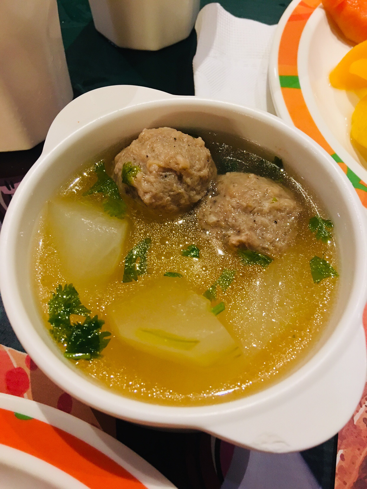 热菜方面有一道冬瓜丸子汤,丸子有点牛肉丸的哪种筋道口感,还挺好吃。