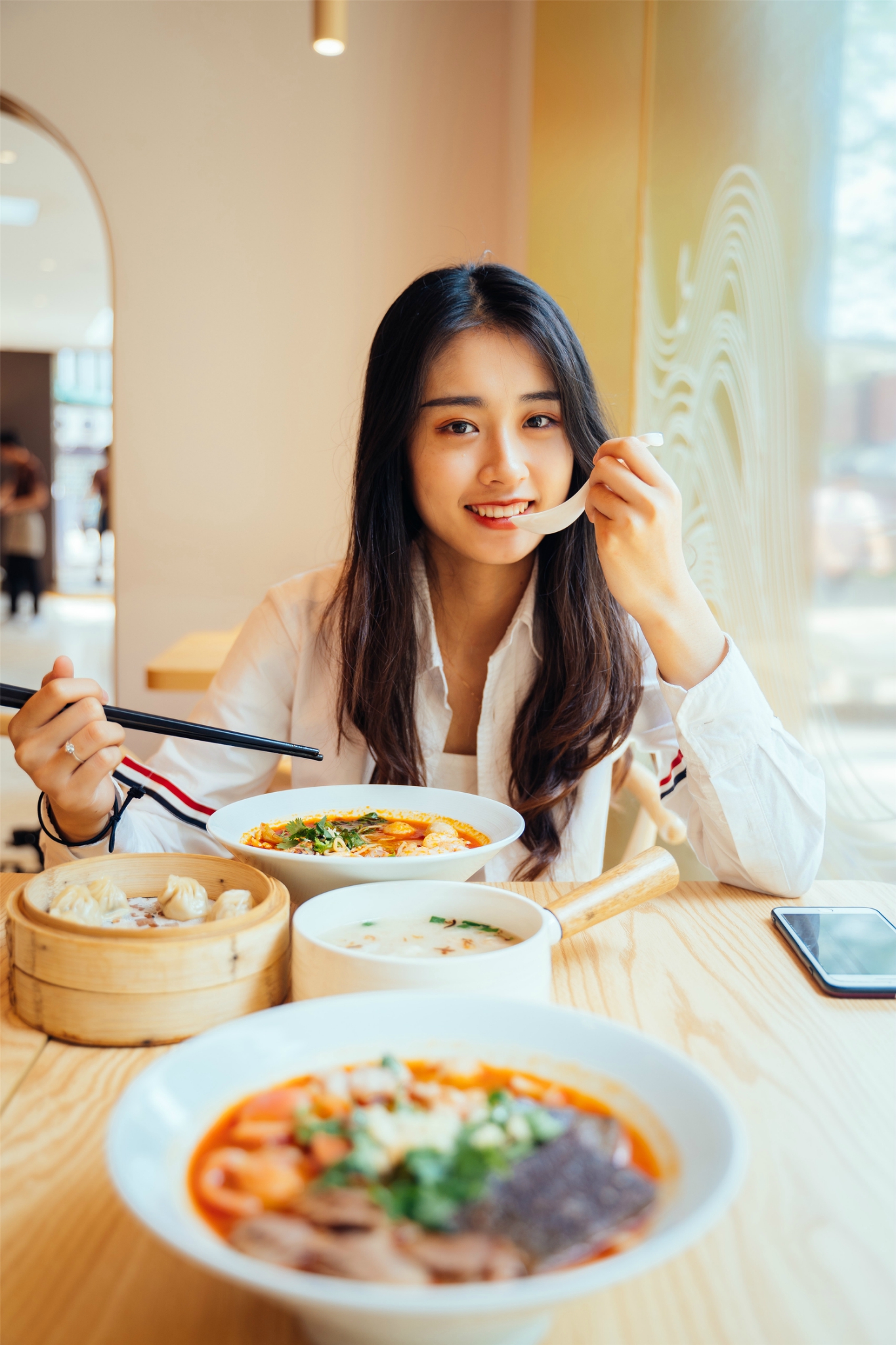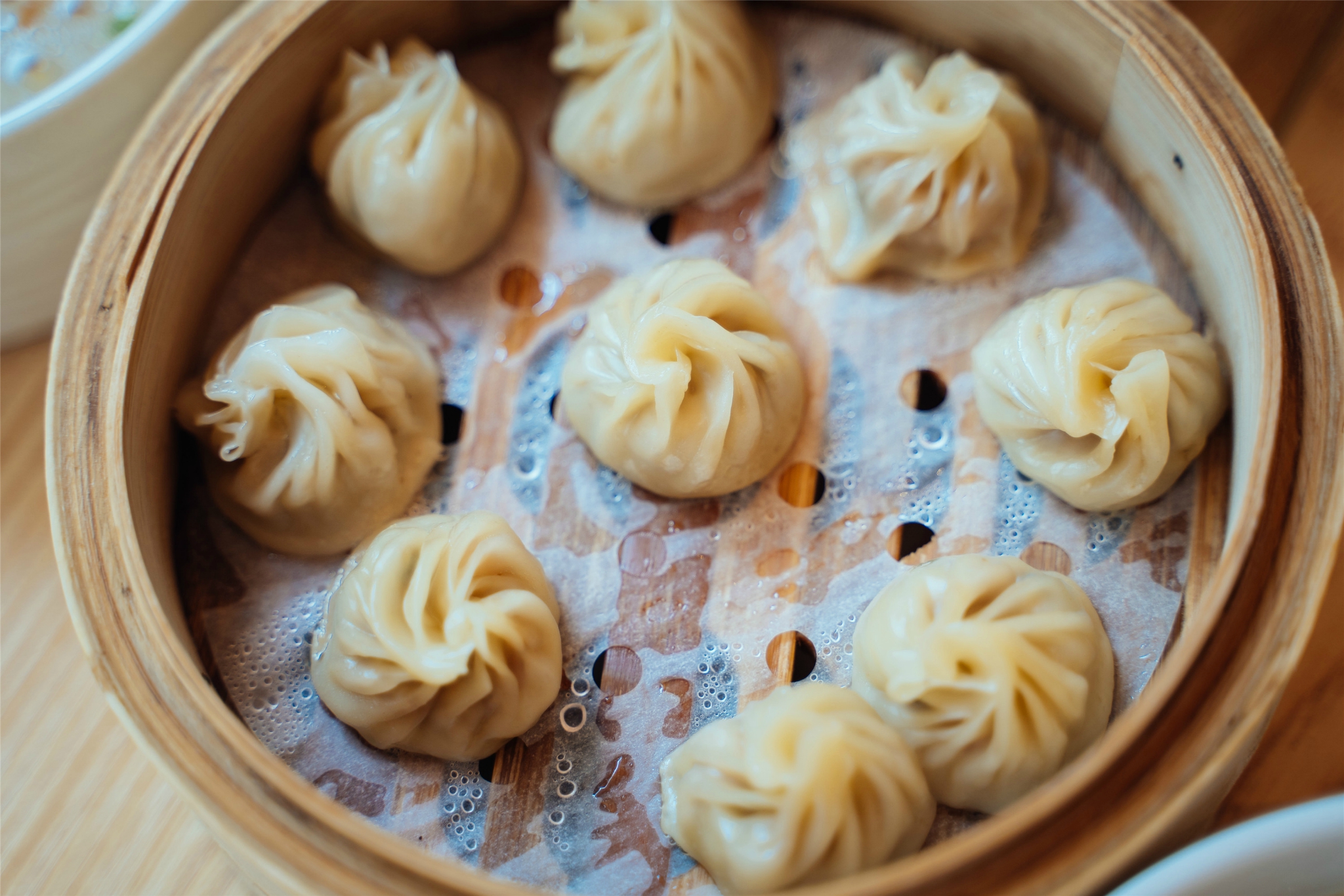 超级可爱的小笼包有没有!跟北方的包子不一样,这边的小笼包是死面的,吃起来更有扎实的口感,但是包子皮很薄,里面还有肉汁,吃的时候要小心哦哈哈哈哈芒果就被肉汁滴到衣服上啦!