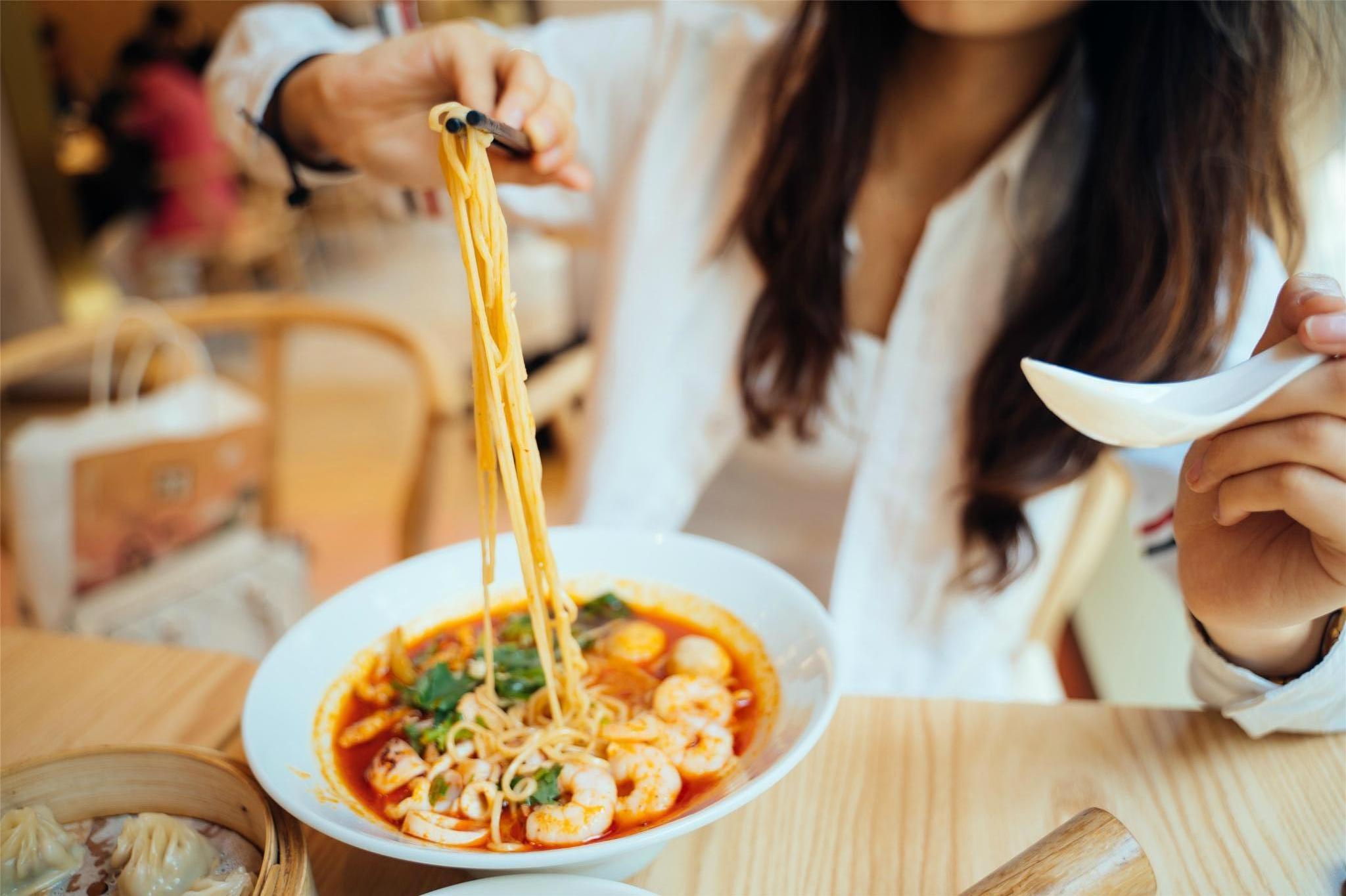 看这鲜红的沙茶汤和足足四五只大虾,就知道这碗沙茶面的味道有多美味!
