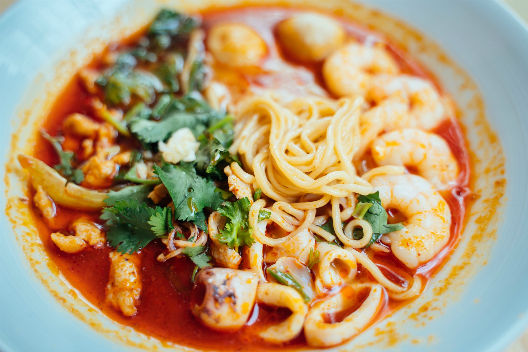 厦门的沙茶面尤其多,每家沙茶口味都略有不同,在鼓浪屿住的酒店下面,就开着这家邻家沙茶面。环境与我在街头见到的沙茶面店铺格外不同,分外干净整洁,木质桌椅,简约的轻工业风装修不知道的,还以为是哪家下午茶餐厅!