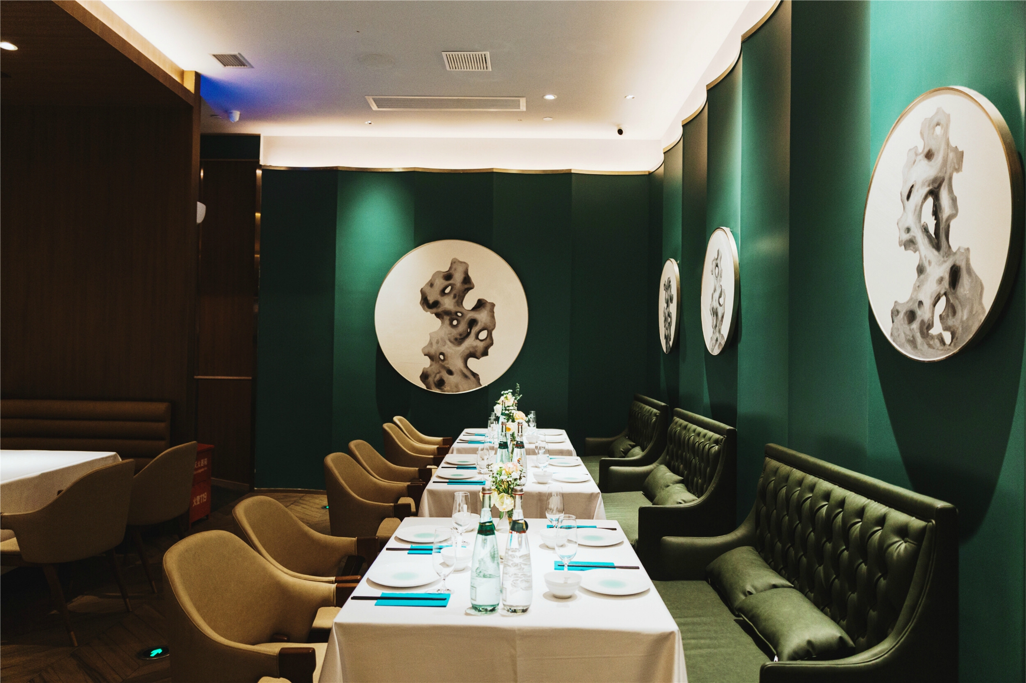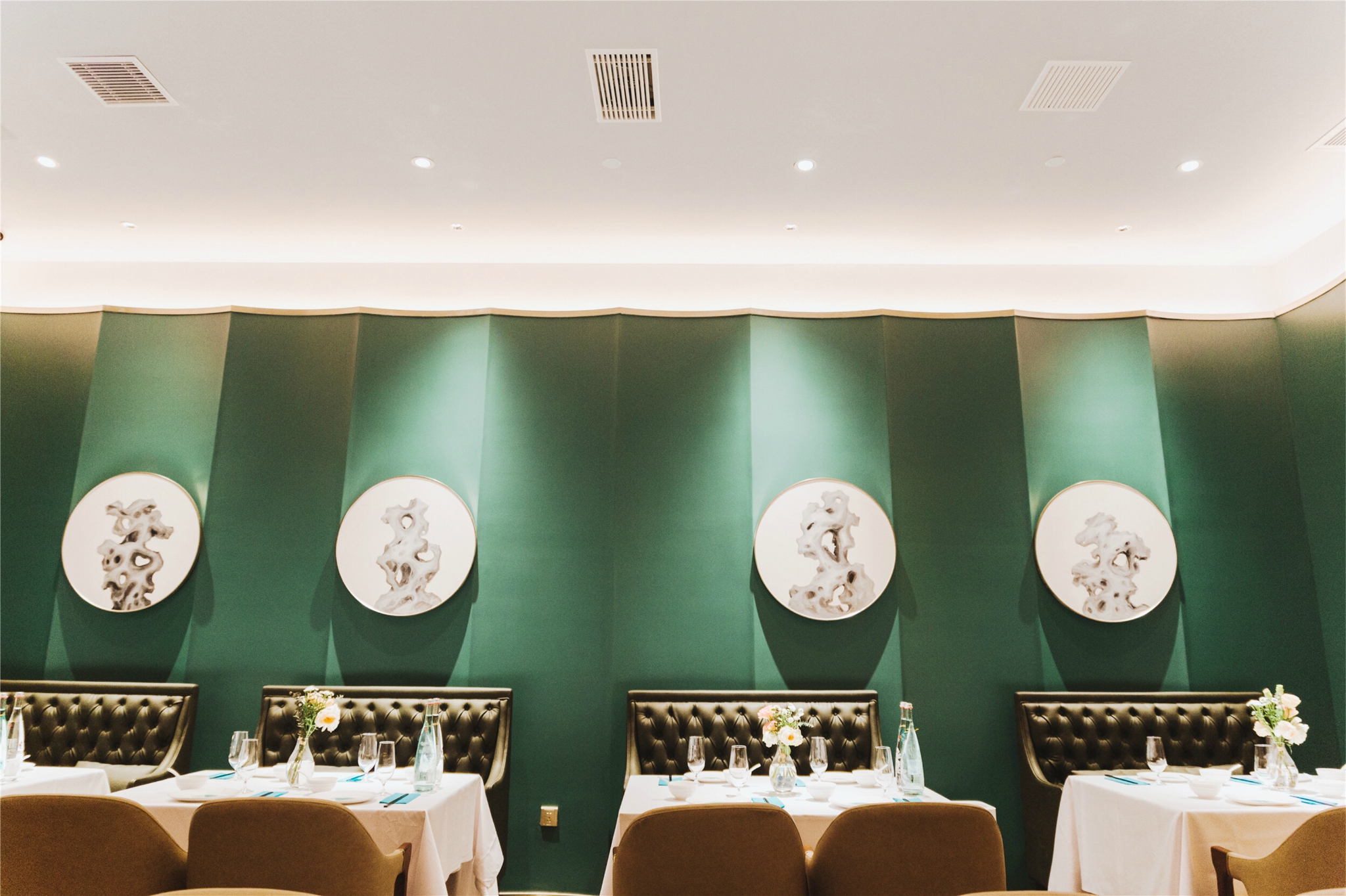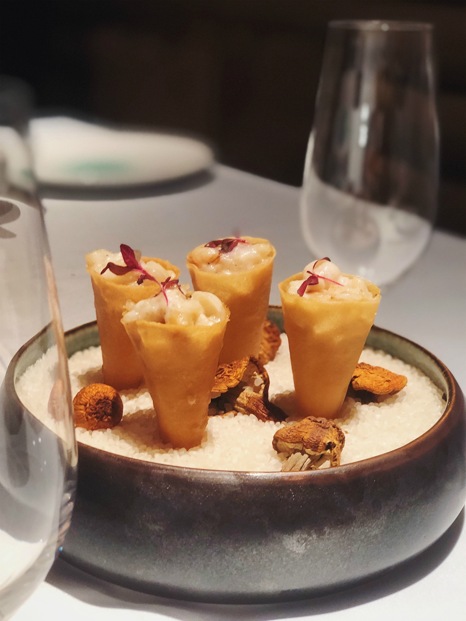 光是坐在这里,就是满满的精致氛围了。环境真的很好,连吊灯都是满满的设计感,温暖的灯光却烘托出高级感,有时候吃饭不仅仅是为了饱腹,仪式感也是必不可少的。一顿精致的美食享用之旅,是几十顿普通用餐也换不来的精致享受。