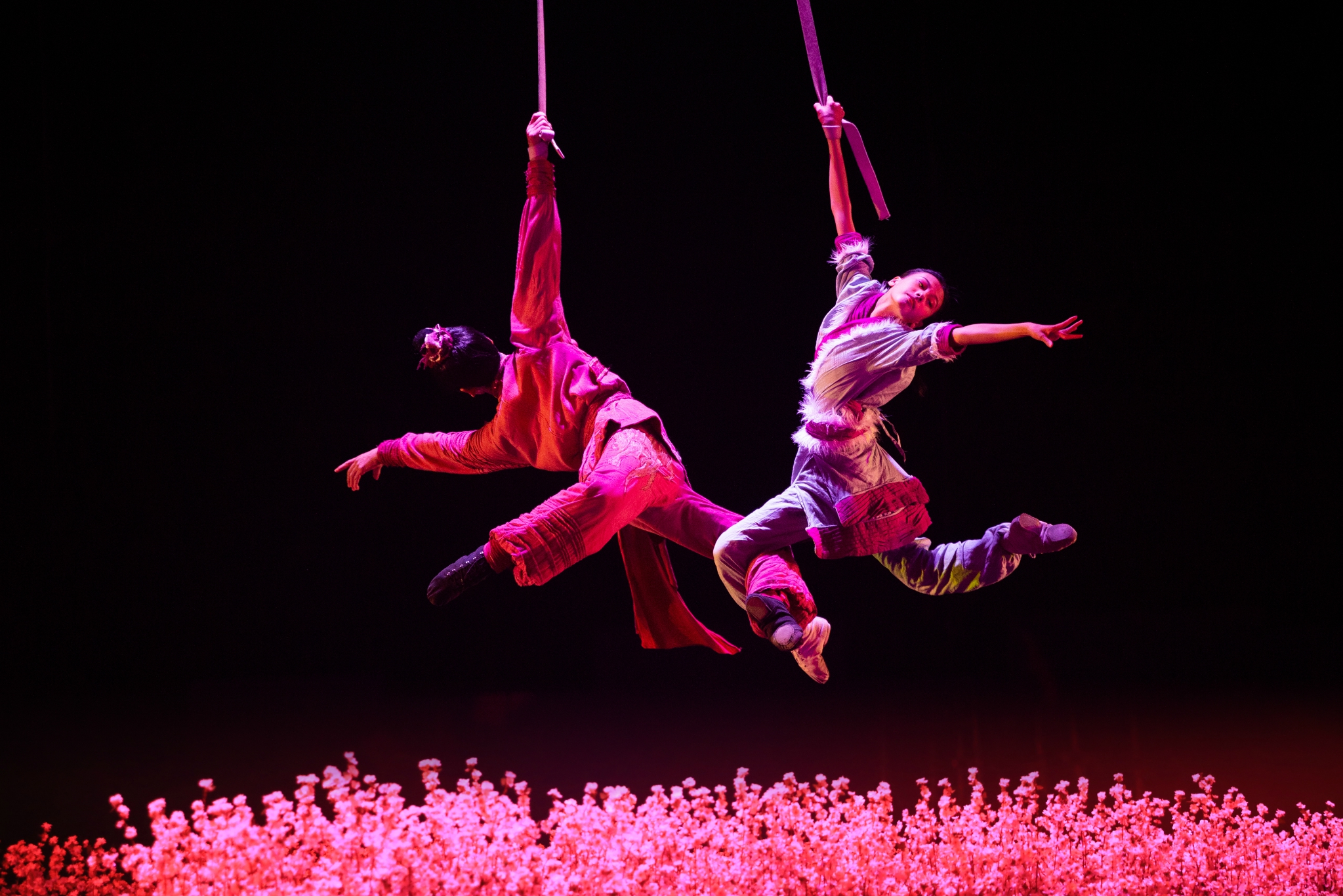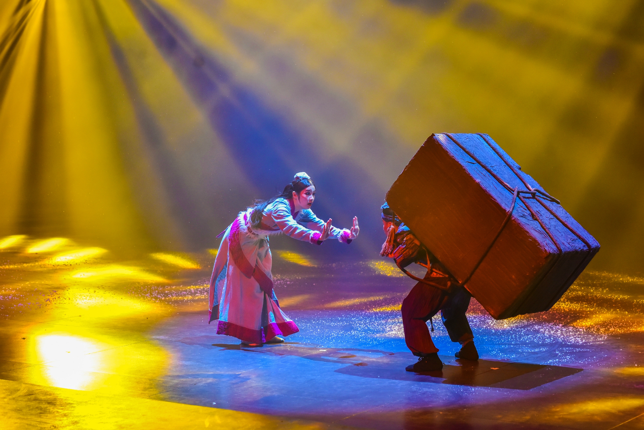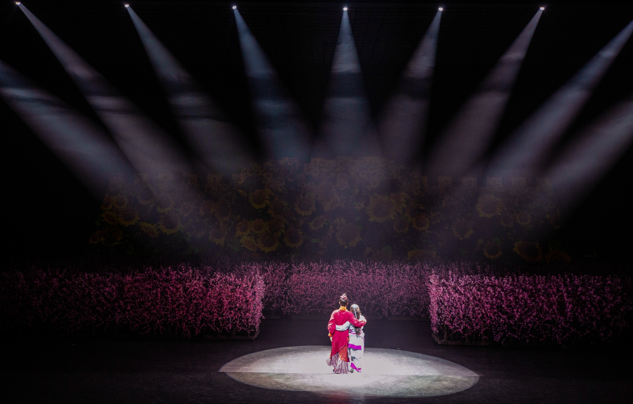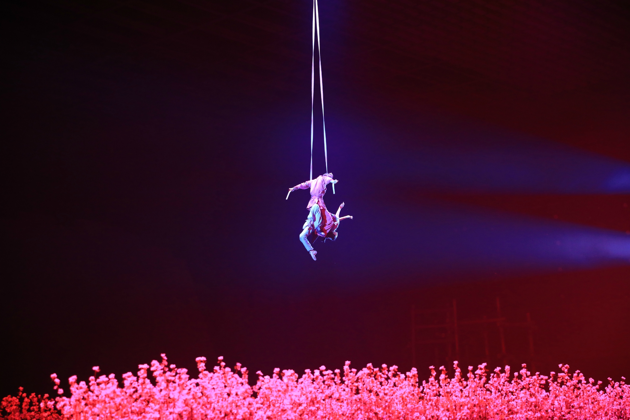 孟姜女哭长城是一个悲惨的爱情故事,孟姜女最后的结局没人再去探究,因为这很显而易见。而在这场演绎中,依旧沿用了中国人惯用的超现实手法,让万喜良复活,跟孟姜女携手相依回家。或许有人会提出异议,明明是一个悲剧,为何却以大团圆的方式结尾。或者,这就是中国人的“乐感文化”吧。与西方的“罪感文化”不同,中国人始终以乐观的精神活着,即使身处困境,也会觉得“落红不是无情物,化作春泥更护花”。其中深层的原因就不深究了,就让这场演出在这唯美温馨的场景下圆一个美好的梦吧。