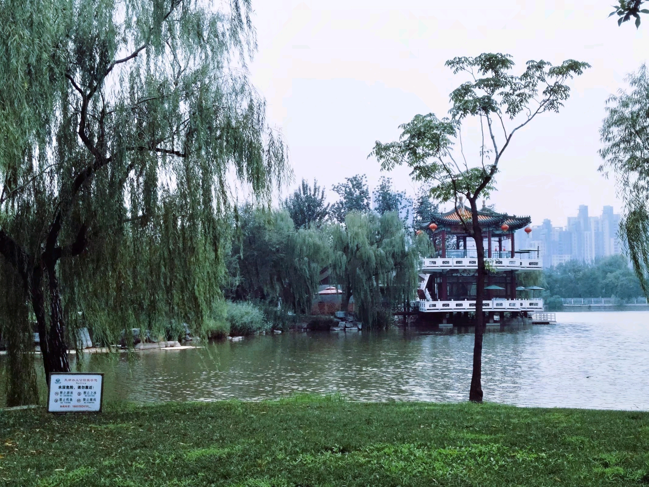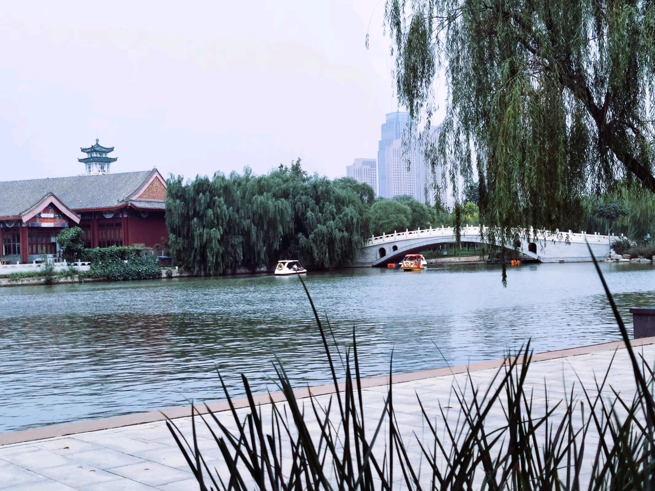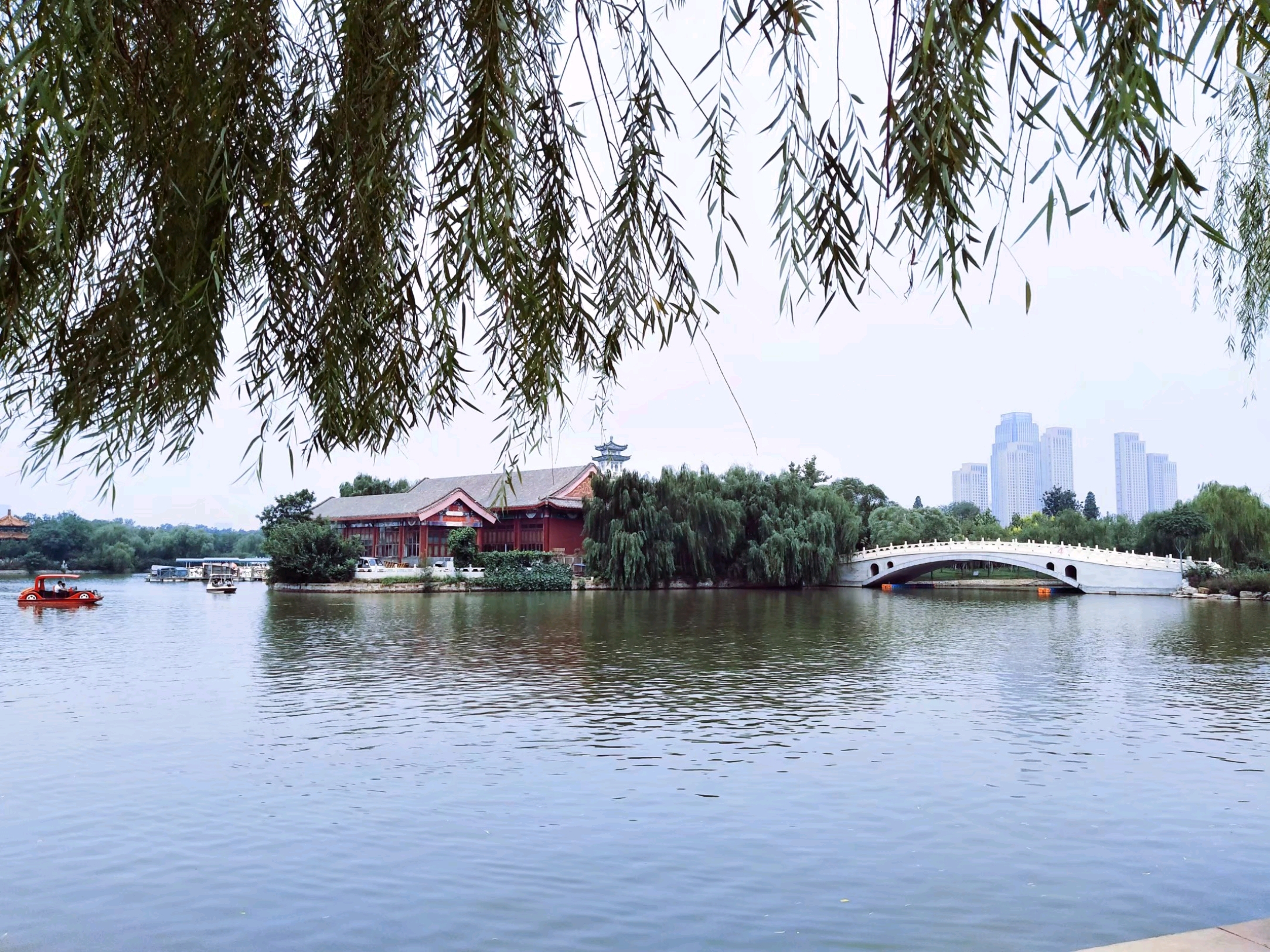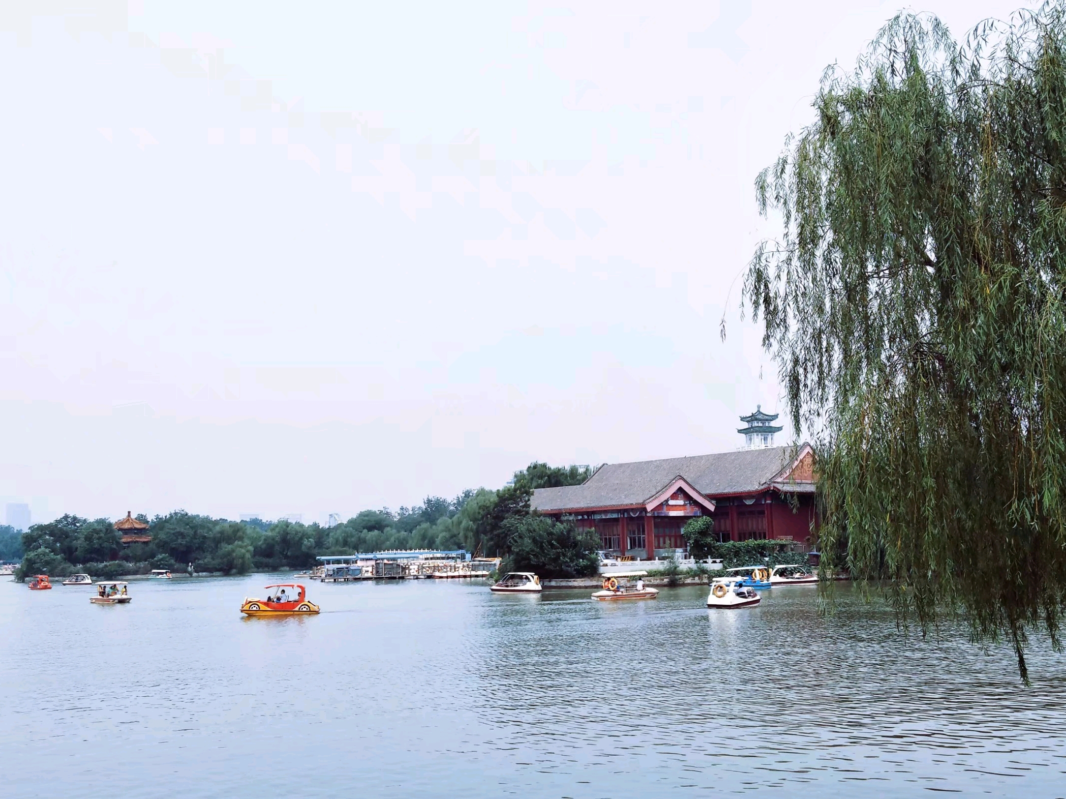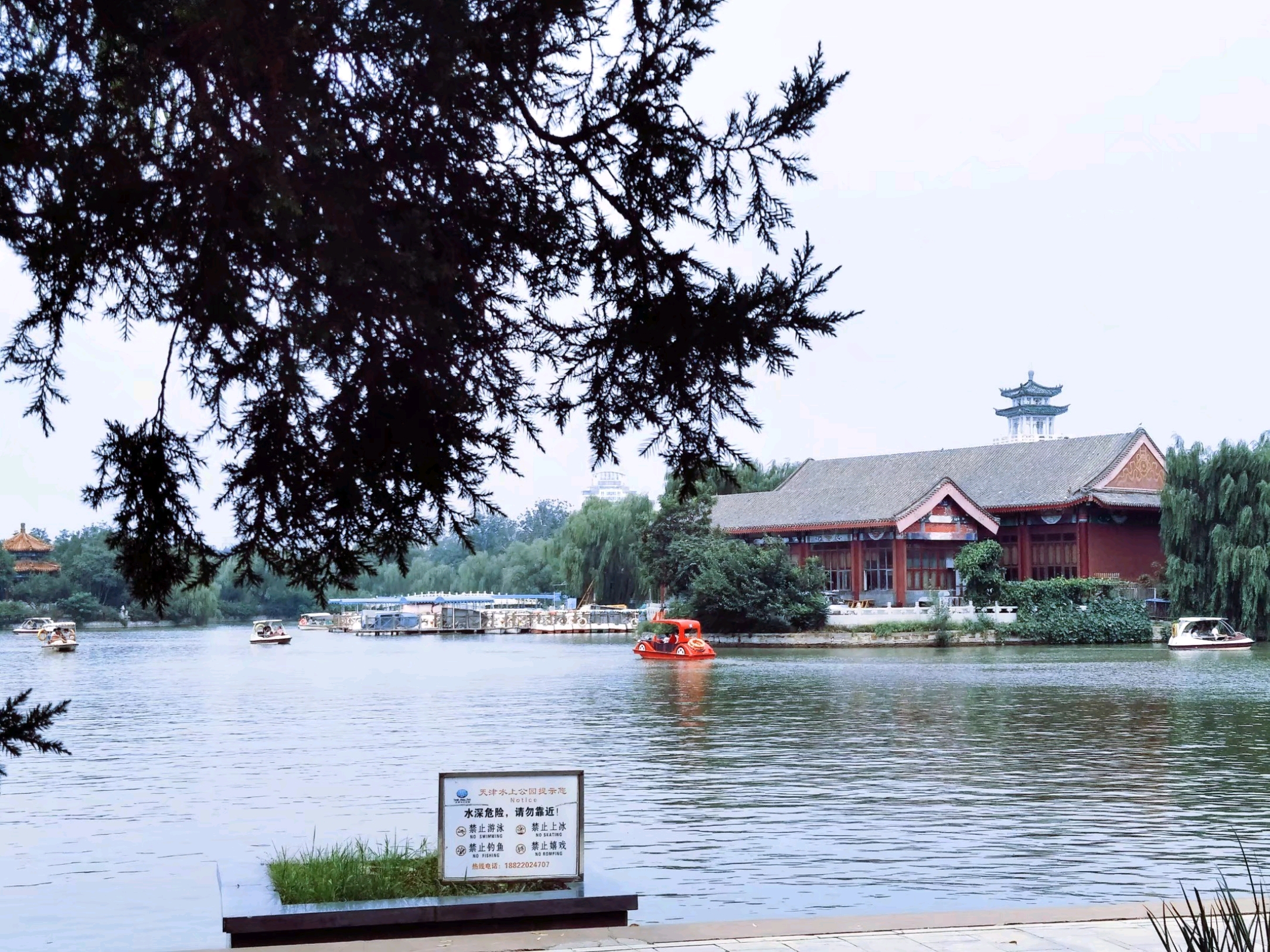 走出天津动物园东门是一个水上公园🏞,各式各样的游船在湖中飘荡着🚤