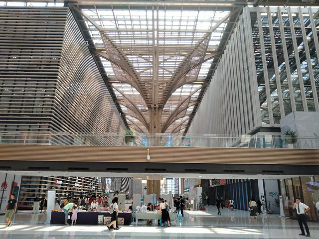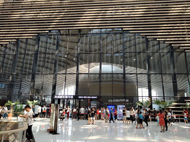 【关于坐标】 奔着网红图书馆来的,结果在文化中心逛了很久。在旭升路和紫云环道交口,紧邻滨海区政府。 【关于环境】 滨海的文化馆,目测这里是未来十几年内塘沽的核心区域。一共分为4个区域,分别是网红图书馆区域+美术馆区域+探索馆区域(不过目前没有营业)+万科体验馆(也就是这周边在建的项目和未来的规划。)和一个购物中心有很多餐厅和一个电影院。设施一应俱全!