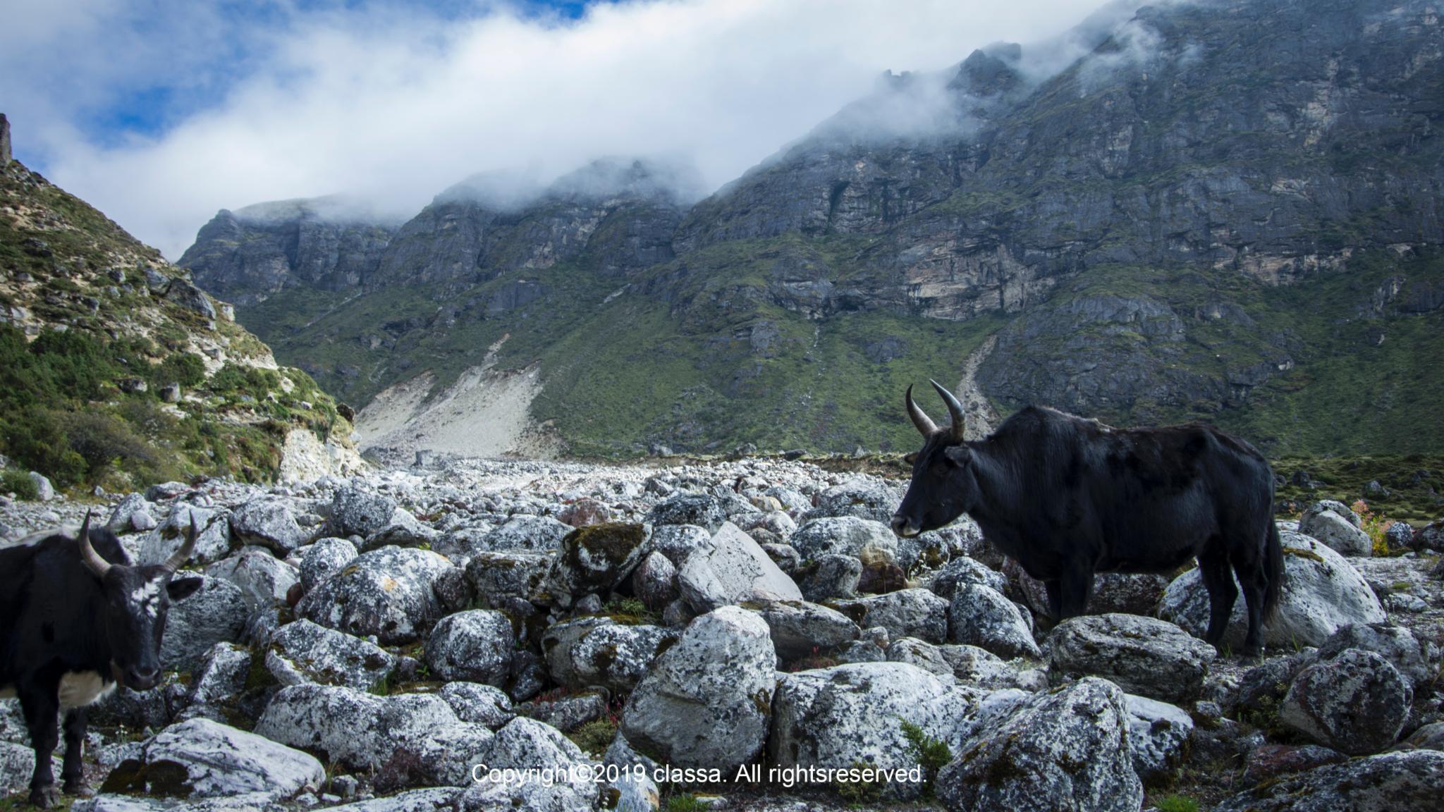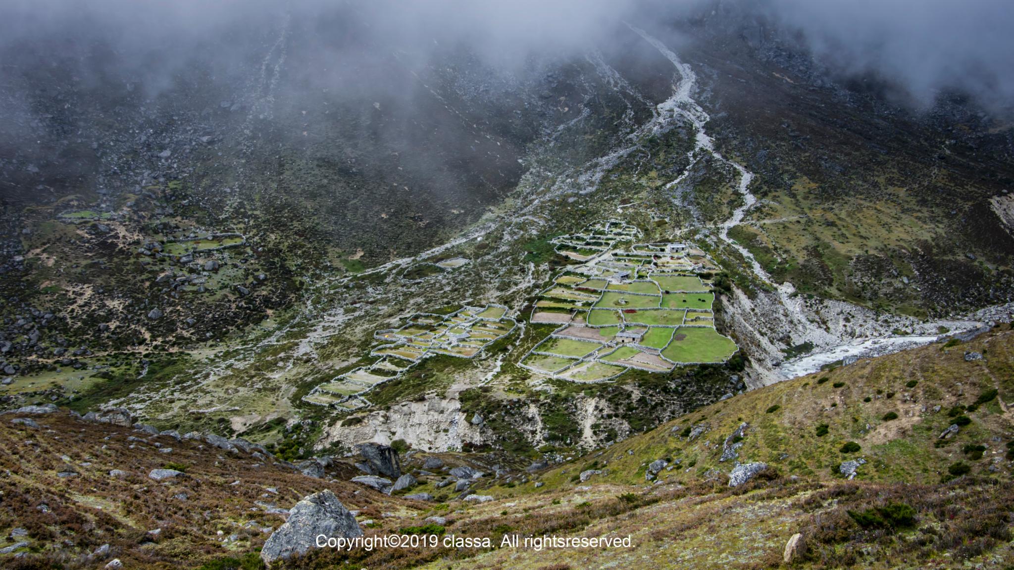 这是进入喜马拉雅山区的第四天,当清晨的阳光普照这片神圣的土地时,我们一天的徒步就又要开始了。这一天的行程从海拔3800米的thame走到海拔4300米的lungden,不到十公里的路程却见识了地貌的变化。