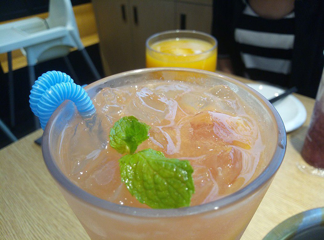 川香鲜辣的口感,蛙蛙的美味难以阻挡,在夏日点燃你的味蕾。 双层的牛腩蛙锅端上来让人先来场视觉享受,分量超足,诚意满满。上层多是牛腩,下层多是牛蛙,底下的配菜有:年糕、包菜、豆芽、土豆、鱼丸……一层层铺在锅底,随着浓郁的蛙汁一起炖煮~这一份,足够4-5人吃到扶墙走 草莓初露气泡水和西柚汁气泡水端上来就仙气飘飘,加冰很清爽