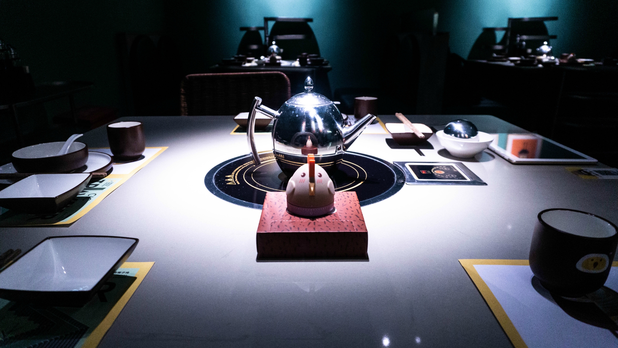重点给大家介绍一下这里的特色原味锅底,每一个锅底都会搭配一大盘剔大骨的鸡肉,精选的海南 文昌鸡,因专业厨师的剔骨处理,使得鸡肉在滚烫的汤汁中最快的熟透,最大限度地减少了肉质的流失,口感鲜嫩爽滑,鸡肉从入锅到熟成只需3分钟,服务人员会用一个小鸡模样的计时器来计时,等铃响就可以开始吃了,这时服务员会提醒大家先喝汤再吃肉。
