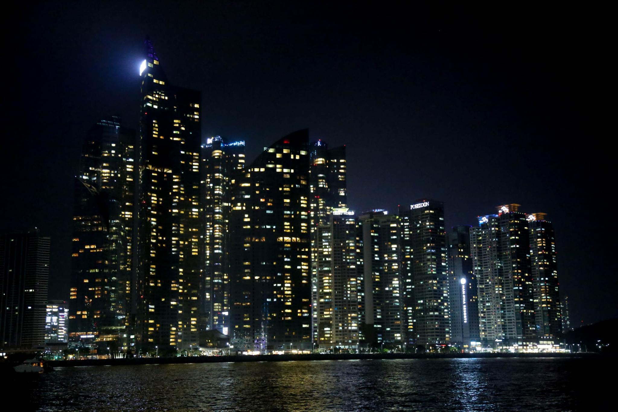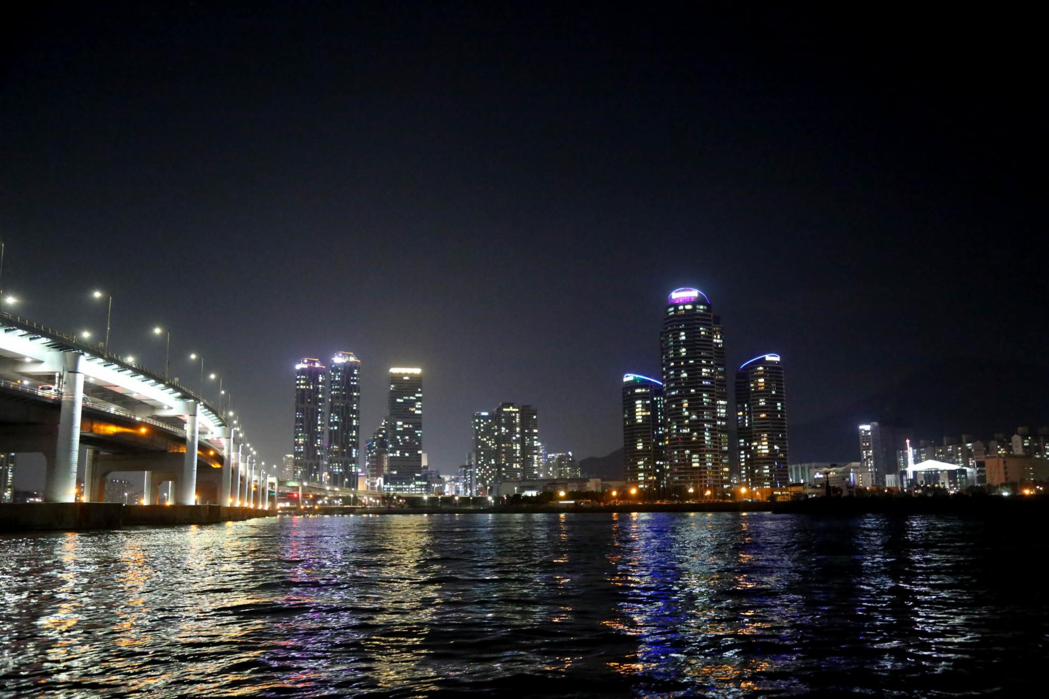 夜幕下的 釜山 ,褪去白天的喧嚣,更显得宁静。游艇奔驰在海面上,吹着凉爽的海风,看着天空上的明月,这样的日子,是多么向往的生活。