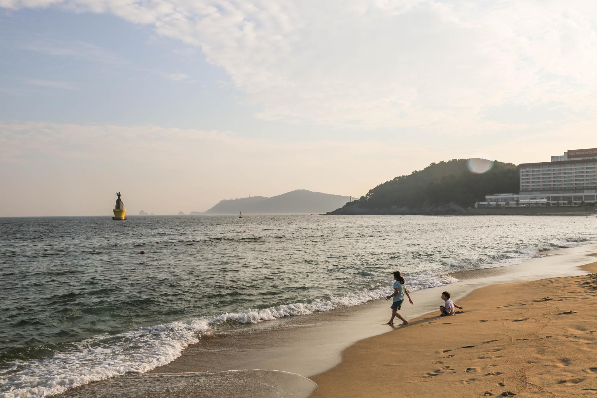 漫步沙滩,可以看到很多来这里游玩的人群,在这里感受了 釜山 的惬意时光。海云台,是 釜山 最美的沙滩