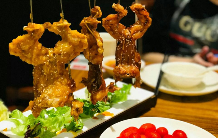 说实话最开始是看见这家店面才进去的,他们家真的好干净,卫生状况真的很好,而且每次都有好多人,生意超级好,但是最后却爱上了他的味道,就是应了那句话,始于颜值,终于味道。 他们家的菜品都很新鲜,说实话,我觉得在夏天这种天气,一家饭店的菜品要保持这样的新鲜度真的好不容易,这点真的很棒。 他们家有几个菜品我都超级喜欢吃,首先强推他们家的烤牛蛙,这个真的很好吃,我记得好像有两种味道,芝士味和咸蛋黄味,我比较喜欢吃咸蛋黄,所以就点了他们的咸蛋黄烤牛蛙,真的,他们家的咸蛋黄烤牛蛙让我好惊喜呀,烤牛蛙刚出来的时候,上面金灿灿的皮上面还在滋滋的冒油,味道真的好棒,咸蛋黄裹得特别多,简直太满足我这个咸蛋黄控了,吃起来特别香,感觉瞬间满嘴的咸蛋黄味,外皮吃起脆脆的,但是里面的肉的口感又很好,真的很好吃,强烈推荐。