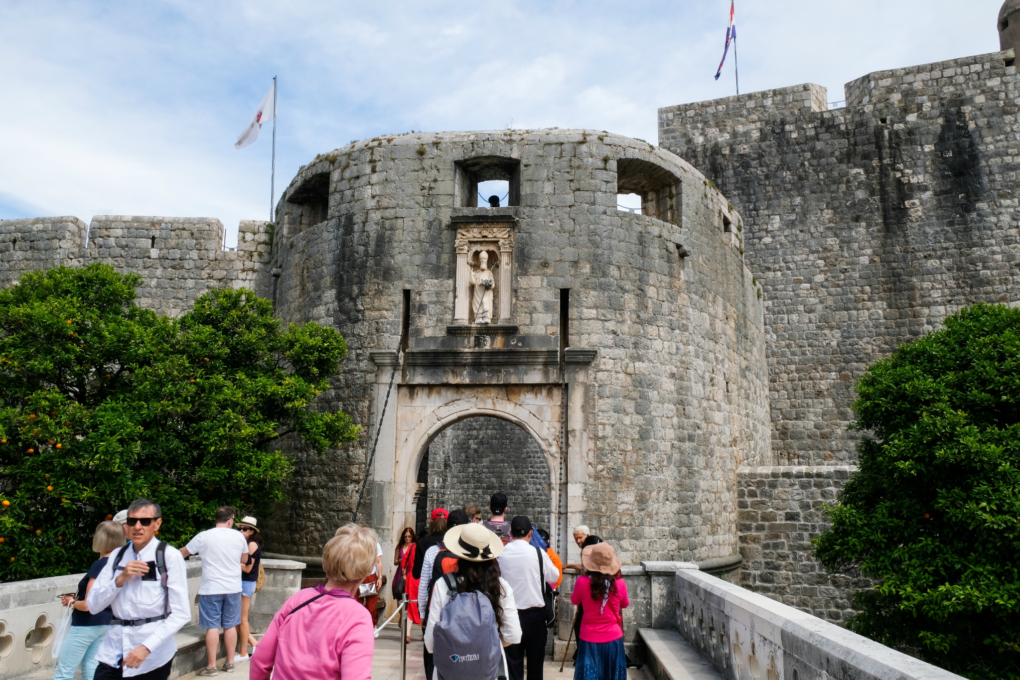杜布罗夫尼克古城留影。穿白上衣的美女是我们在杜布罗夫尼克的当地导游。