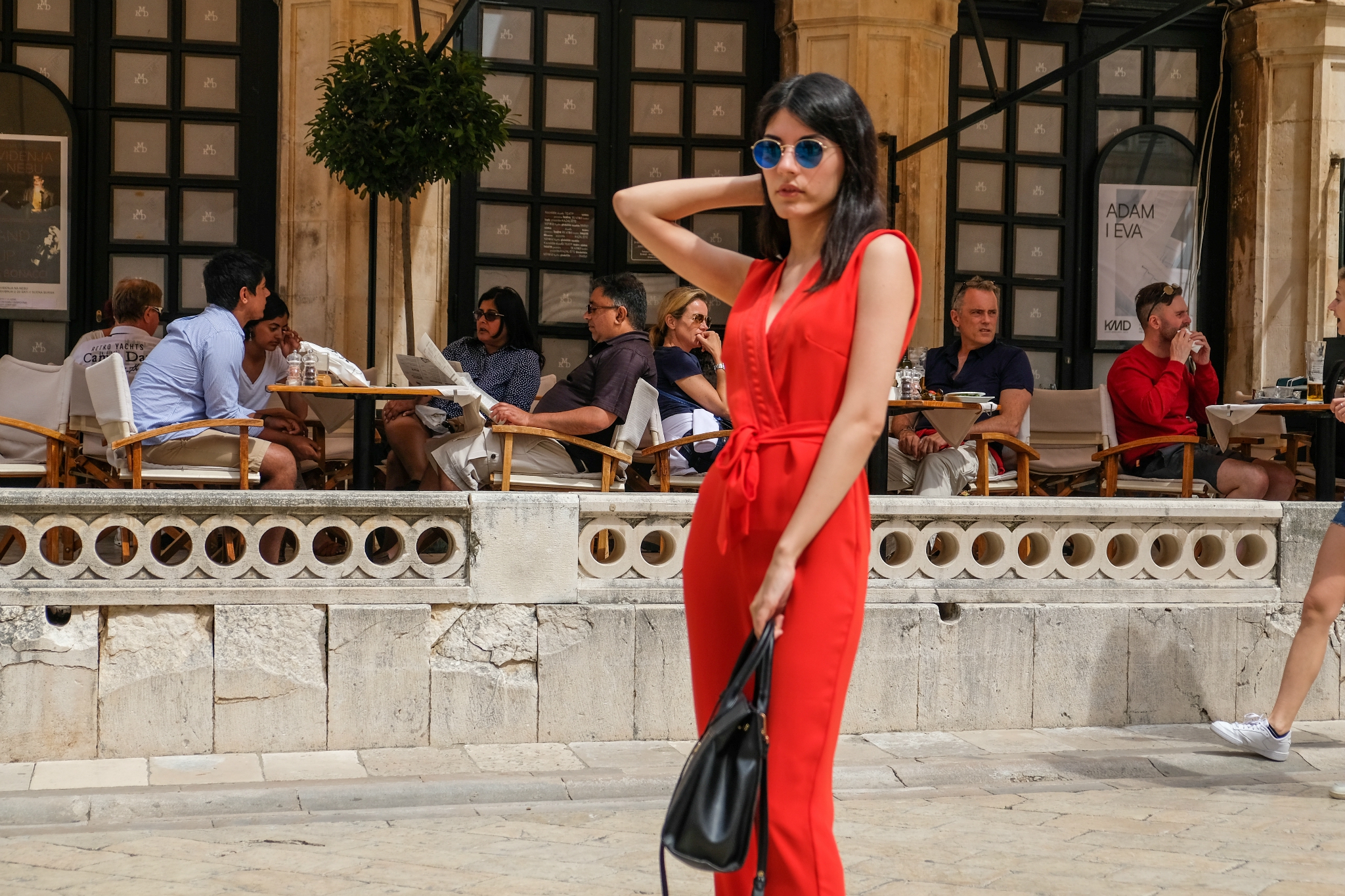 在杜布罗夫尼克古城和外国美女拍照