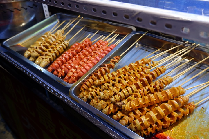 晚上来的时候塞上老街已经基本关门了,不过还好,东边的这个街巷还满火热的,都是人,然后就进去看看有什么好吃的吧~ •坐标:大召前街与通顺街交叉口南50米 •交通:公交大召站/下车以后穿过大召寺广场然后再过一条街就到了 •环境:这条巷子不长,步行也就10几分钟走完了 两边的美食店铺也都比较的类似,不过还是能找到好吃的 比如肉串,10元3串,还有香肠啊,10元2串什么的,反正个人是比较推荐肉质感十足的香肠,那才好吃,其他的串串哪里都有。 节日期间,这里装饰的还是非常有节日气氛,看着还是不错的,确实要比南方有味道一些。 不过路上遇到一条狗,看着我的香肠,不肯走了,哇塞,吓死我了,赶紧把香肠给狗狗,逃了再说,好怕啊。