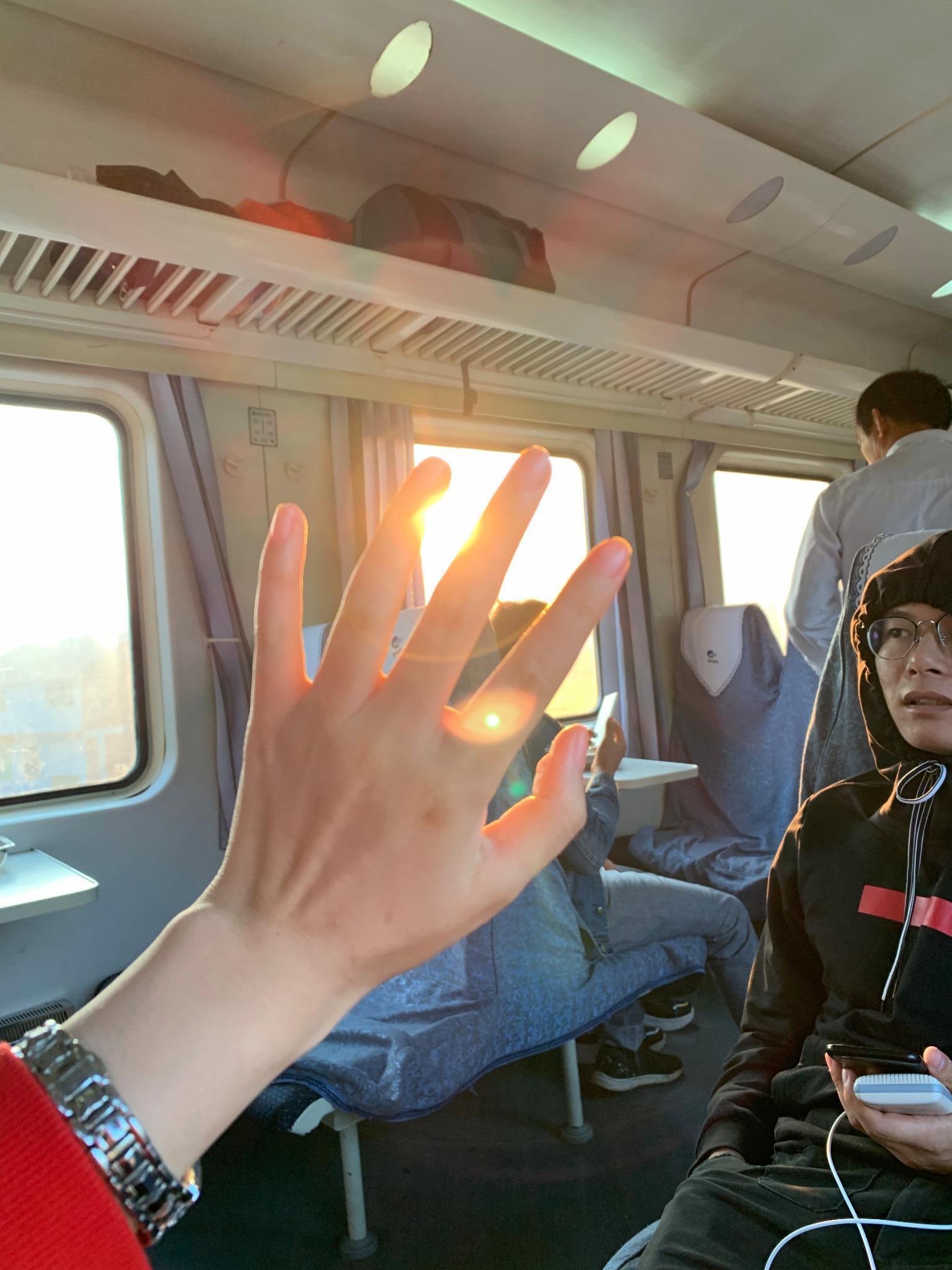 没想到去福州的人比较少,后面基本都可以在硬座躺着了,中途还睡了一觉。从照片上看还有很多空的位置,后面就基本上大家都会躺着休息一下,也就没有那么累了。去的时候担心海边夜晚比较冷,所以我们穿的长袖卫衣,后面这件衣服派上了大用场。