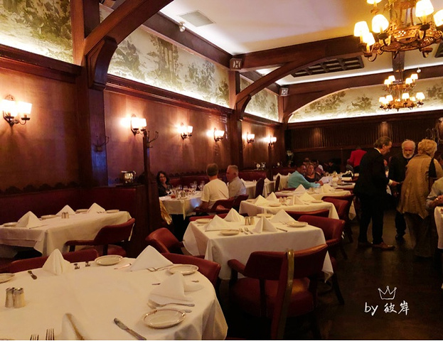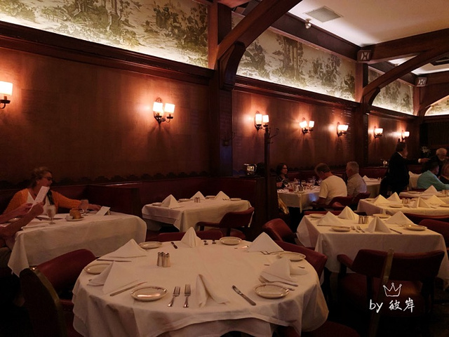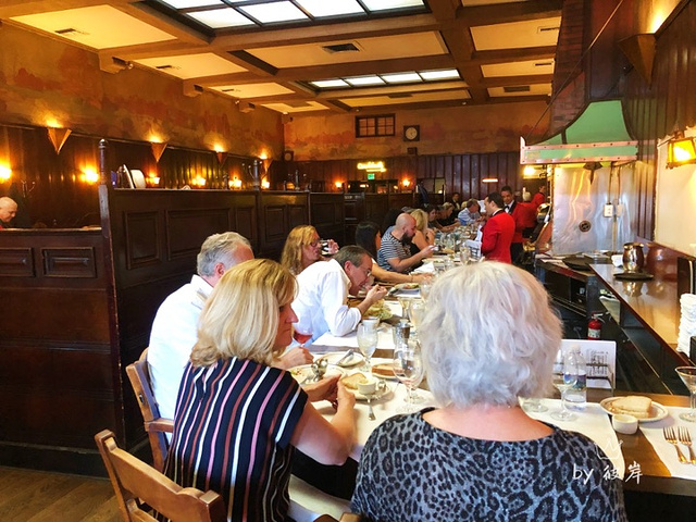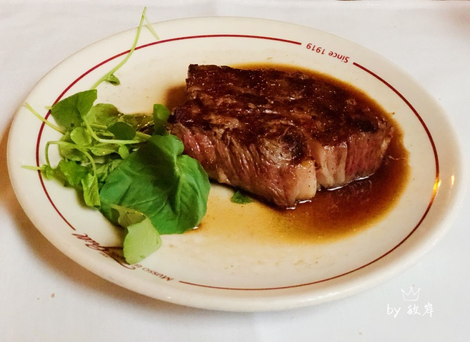始于1919的洛杉矶牛排馆,今年恰恰好是100岁。蔡澜曾将它写进人生必去的餐厅这本书里。 地理位置特别优越的餐厅,就在洛杉矶的好莱坞星光大道旁,地铁红线到好莱坞高地步行5分钟即到。 因没有提前预定,只有吧台位可以坐,不到晚上5:00,连吧台位都坐满了。人气真心太火爆了。 餐前面包 面包还不错,黄油也很嗲,但为什么面包是冷的。。。 牛排 选了肉眼,牛排本身品质还不错,对得起价格。调味汁不错,以至于问服务生要胡椒,直接告知没有。好吧,要承认没有胡椒确实也不错吃。 洋葱汤 芝士洋葱汤,可以用餐前面包蘸着吃,很香,但是实在太咸了有木有。 人均300-500人民币左右。 店里环境也是老式古典风格,看得出已经经营了很多年。冲着名气和性价比,确实值得一来。
