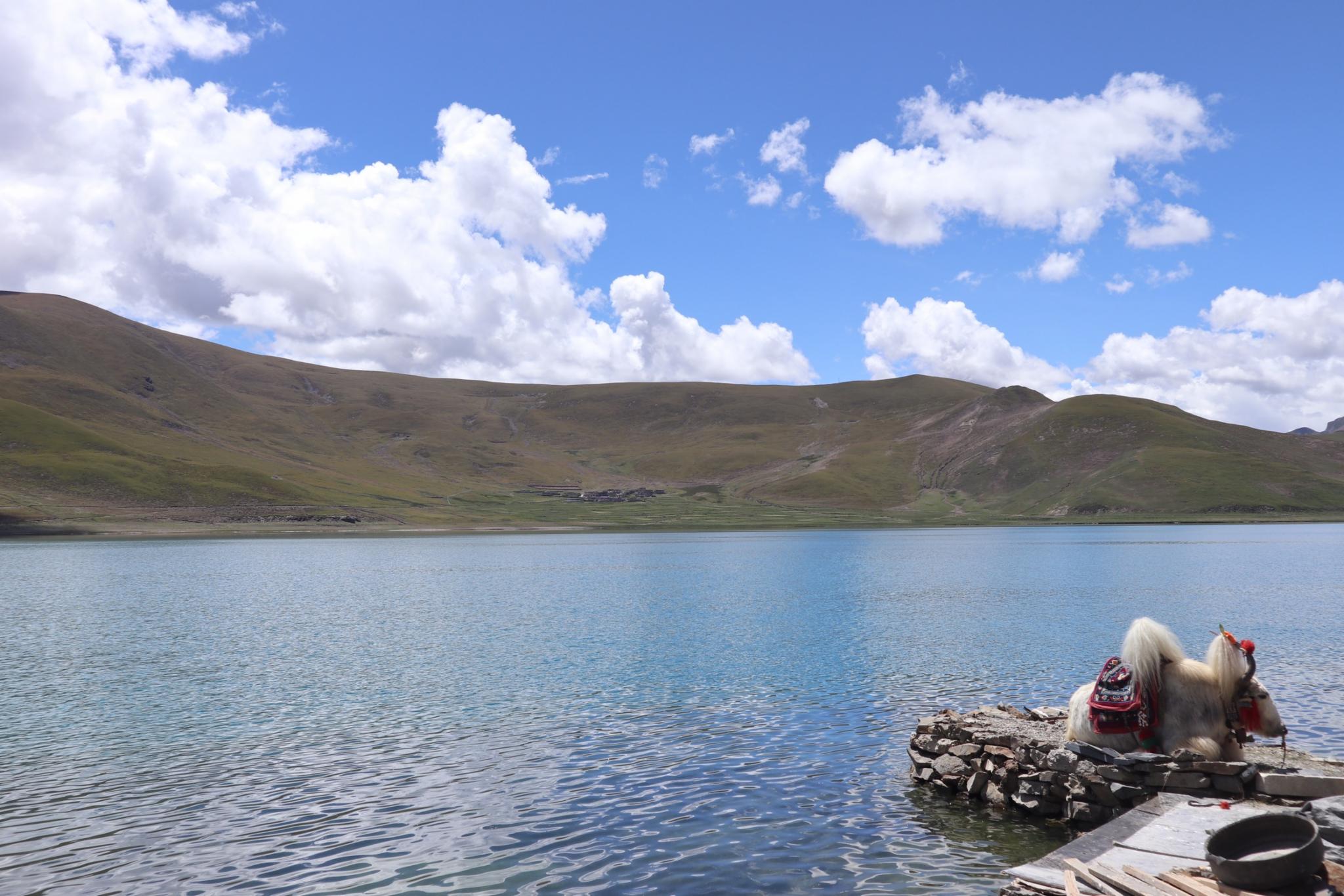 临时决定出去走走,和朋友们包辆车,出发羊湖。一首《山路“八十”湾》分享给大家。这时候不得不夸夸自己,竟然没有缺氧。佩服大自然的鬼斧神工,羊湖像嵌在山峦里的一颗巨大玉石,离得远,不见一丝波动,赤裸裸的一幅静态画。牦牛,小羊羔,藏獒成为拍照的装饰物。时间够的话,就在湖边走走听听歌,阳光若是不大,可以坐下聊聊天。拍照比不过肉眼,亲自感受大于文字。