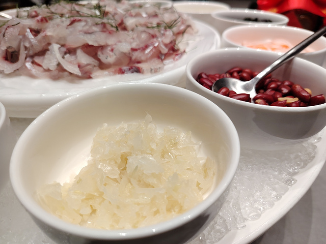 到南宁丫丫厨娘柠檬鸭(喜荟天地店)吃饭,被爽口美味的横县鱼生和酸辣脆爽的南宁酸嘢深深打动。 其实我是没想到,丫丫厨娘柠檬鸭也有横县鱼生,而且摆盘漂亮,吃起来爽口美味。 他家还有加了紫苏的南宁酸嘢,里面有李子、芒果、苹果等,比街上的还好吃,真是吃到停不下来。
