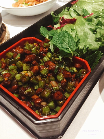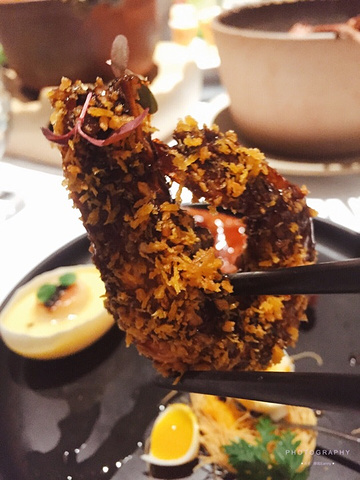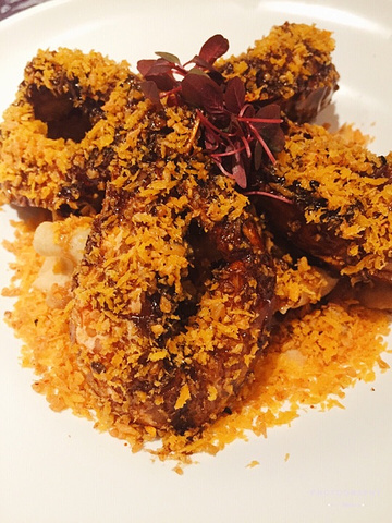 环境 以清新自然的绿色为主,白色桌布,透明玻璃杯,给人感觉很有西餐的仪式感。 鸽子 蛋 超有创意的设计,鸽子烤得酥脆,一点也不油腻,蛋记得用力敲碎,会发现有蛋黄流出,其实是芒果果酱,搅拌一下和炸面线一起吃,口感丰富。 秋季新品 避风塘意大利黑醋海虎虾 个头超大的鲜虾,外皮酥脆,里面虾肉鲜嫩,底下满满的避风塘炒蒜,吃起来口感香脆可口美味。 饮料 艳遇 红色的饮料,刚开始是分开的,等你加入搅拌均匀后会变成可爱的粉色,象征着粉色的艳遇。