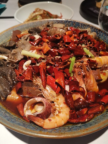宴遇位于万象城的L3楼,一直以创意料理而出名,比较早的网红店之一吧,最近上了很多新品,而且还有一些套餐活动。 今天朋友聚餐来这边,环境高端大气上档次,点了很多菜,创意料理鸽子蛋,烤乳鸽和白巧克力,里面还有芒果汁,敲蛋的过程趣味十足。 我最爱吃的红柳枝安格斯小牛肉,肉质鲜嫩多汁,淡淡的果木香味;水煮三鲜,用料很足,大虾鱿鱼花蛤。 还有新品胡椒猪肚肉骨茶汤,里面有猪肚,淡淡的白胡椒味道,非常有营养,暖胃好喝。蓝莓沃思,简直比甜品店的还好吃,酸辣炸虾也是很大一个。 还有最新的饮品宴遇,冰块里面有玫瑰花,瓶子里面装有饮料,颜值很高,口感也很不错。