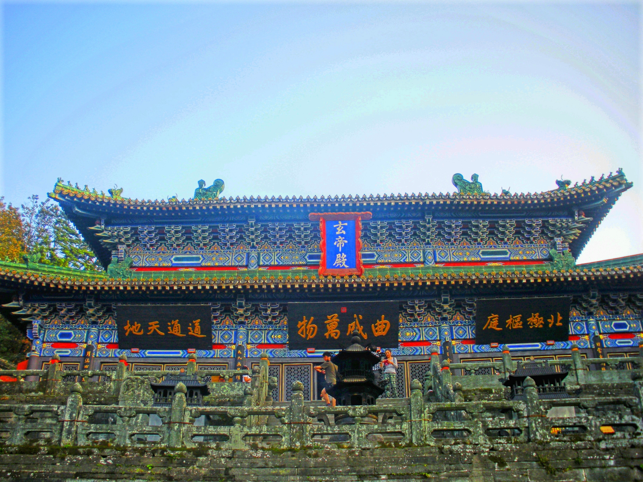 两仪殿是武当山南岩景区的一处道观,受地域所限,设计者巧妙结构,侧筑山门,建了这座两仪殿。两仪殿内供奉有圣父、圣母像,圣父、圣母是道教对真武大神父母的尊称。可见“两仪”是指“父母”,虽说供奉的是真武的父母,也是在教诫每位信徒香客,孝敬父母是修行人生的一大要义。两仪殿在旺季6点就要关门,这边好多道观上下班时间和行政机关差不多,到点就关门走人,晚了只能外观。