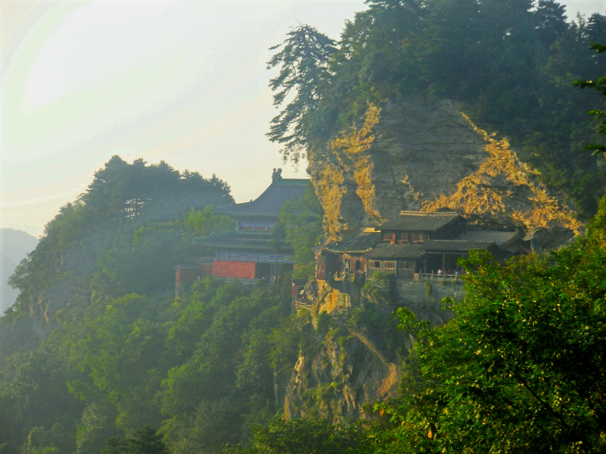 南岩宫是武当山36岩中景色最美的地方,山体的断层,成就了险峻,南岩宫如同一幅挂在岩壁上的画卷。当你到这时你很能想象那些建筑材料是如何镶嵌到这坚实的岩壁之中的,这样的建筑奇观非常值得去看。选择傍晚时分闲逛这里实在对极了,不仅可以体会武当山古建的独特艺术,而且还能看美丽的日落。