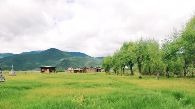 在草原之中的藏族民居,小小的和大自然融为一体。
