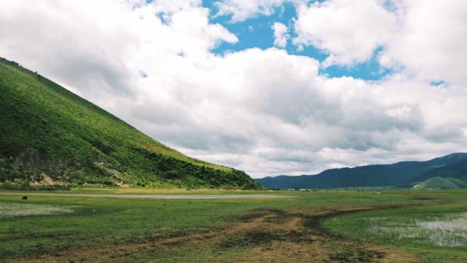 在草原上会觉得天特别特别低,好像再往前走走,就能伸手摸到白云。