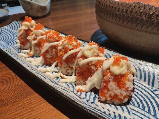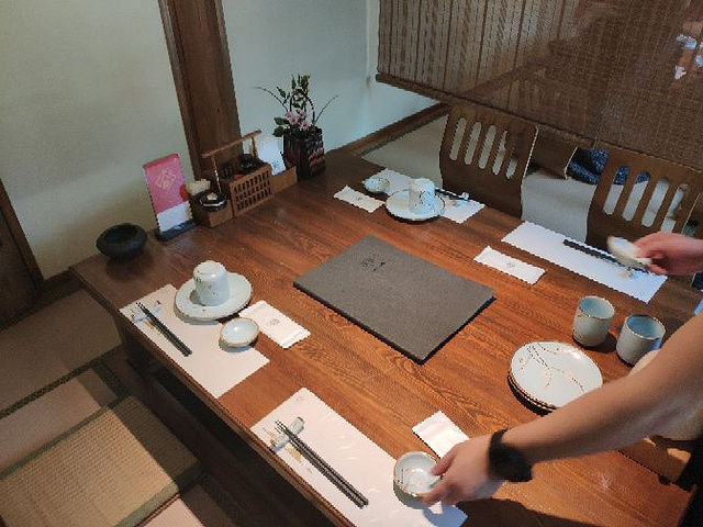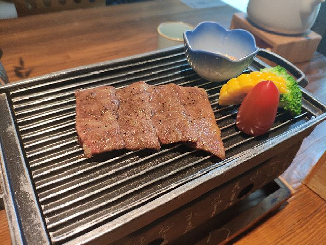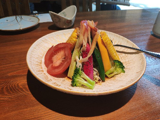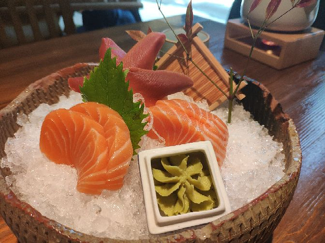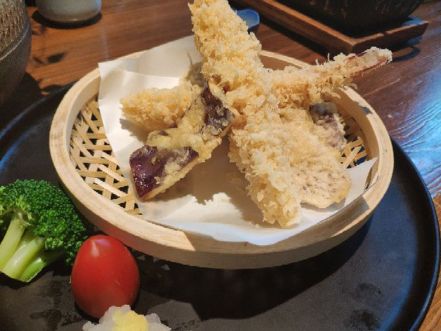 😍以前来五店市逛,就一直很想品尝,这次因为要谈事情,约了朋友过来吃。 🍵店内环境不错,有点像开放式包厢,拖鞋进去,桌子到,需要的食用道具都有。 🌽蔬菜沙拉,切的超好看,忍不住拍拍拍。有好多种,水果+蔬菜,吃了对身体肯定好。😍 🐟三文鱼刺身拼盘,三文鱼很新鲜,厚度均匀。北极贝也很大片,这道菜很划算,两个人刚好。 🍽牛小排,和炉端上来的,很有仪式感,下面火还点燃着,要尽快吃掉,才有最好的口感。😇 🍤天妇罗,两只大虾,还有紫薯、番薯,沾着酱吃。 🍂第一次吃榴莲卷,中间也是加火龙果和芒果,意外的好吃。清爽不油腻。👏 😋吃下来觉得很舒适,服务也到位,四合院很方便叫服务员,一个套餐吃完很撑。很有特色的店,还会带朋友来的。