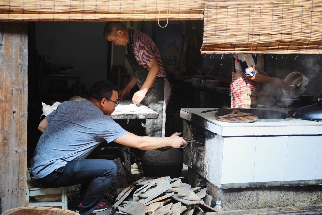 一家人分工合作,烧柴、揉面、煮面、放浇头,整套流程下来,配合默契。从侧面来看,像是一副充满烟火气的油画。