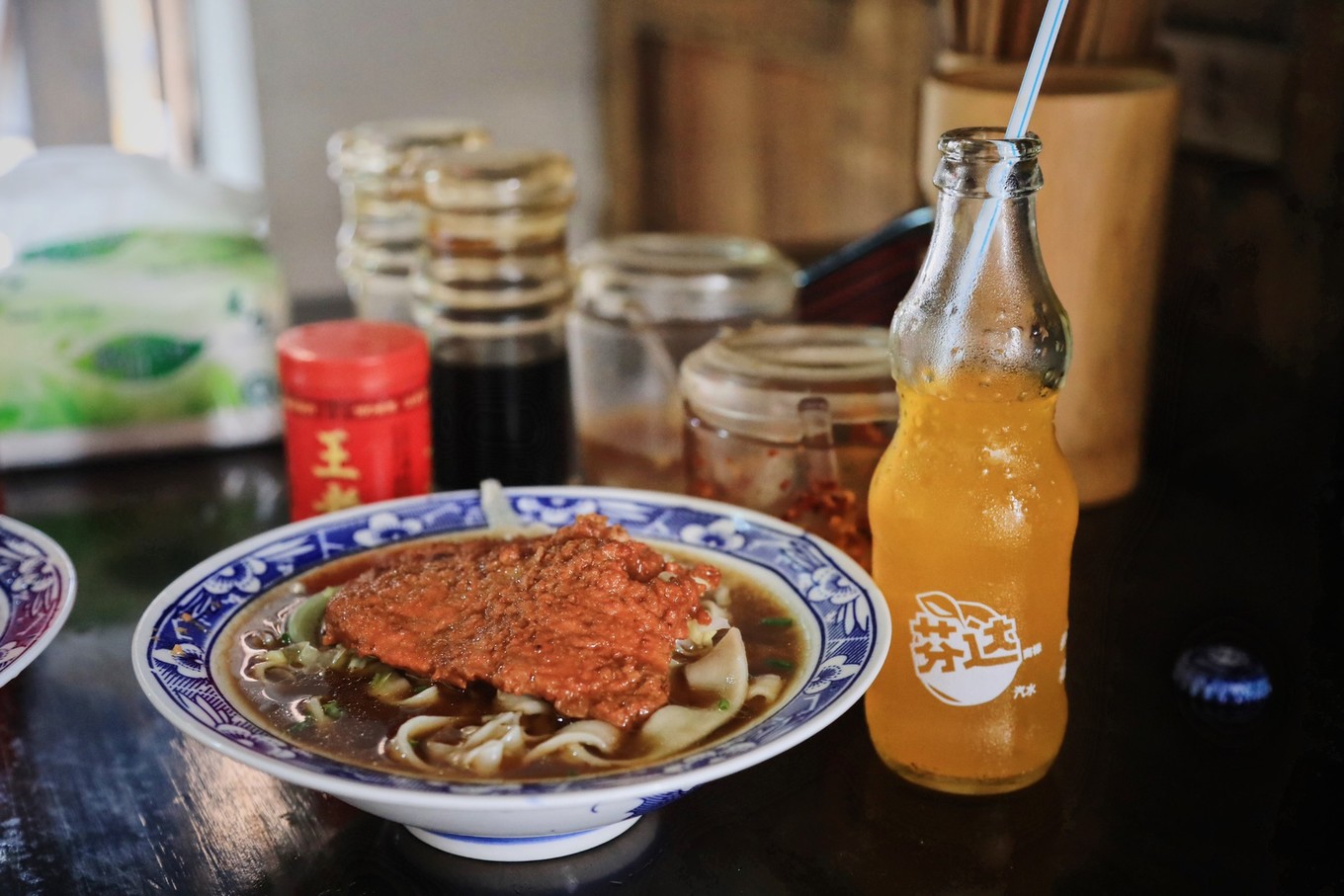 这里的面条叫做水牵面,面条筋道又软滑,配上店里特色的浇头,吃完再把汤喝掉,真的是再幸福不过了。