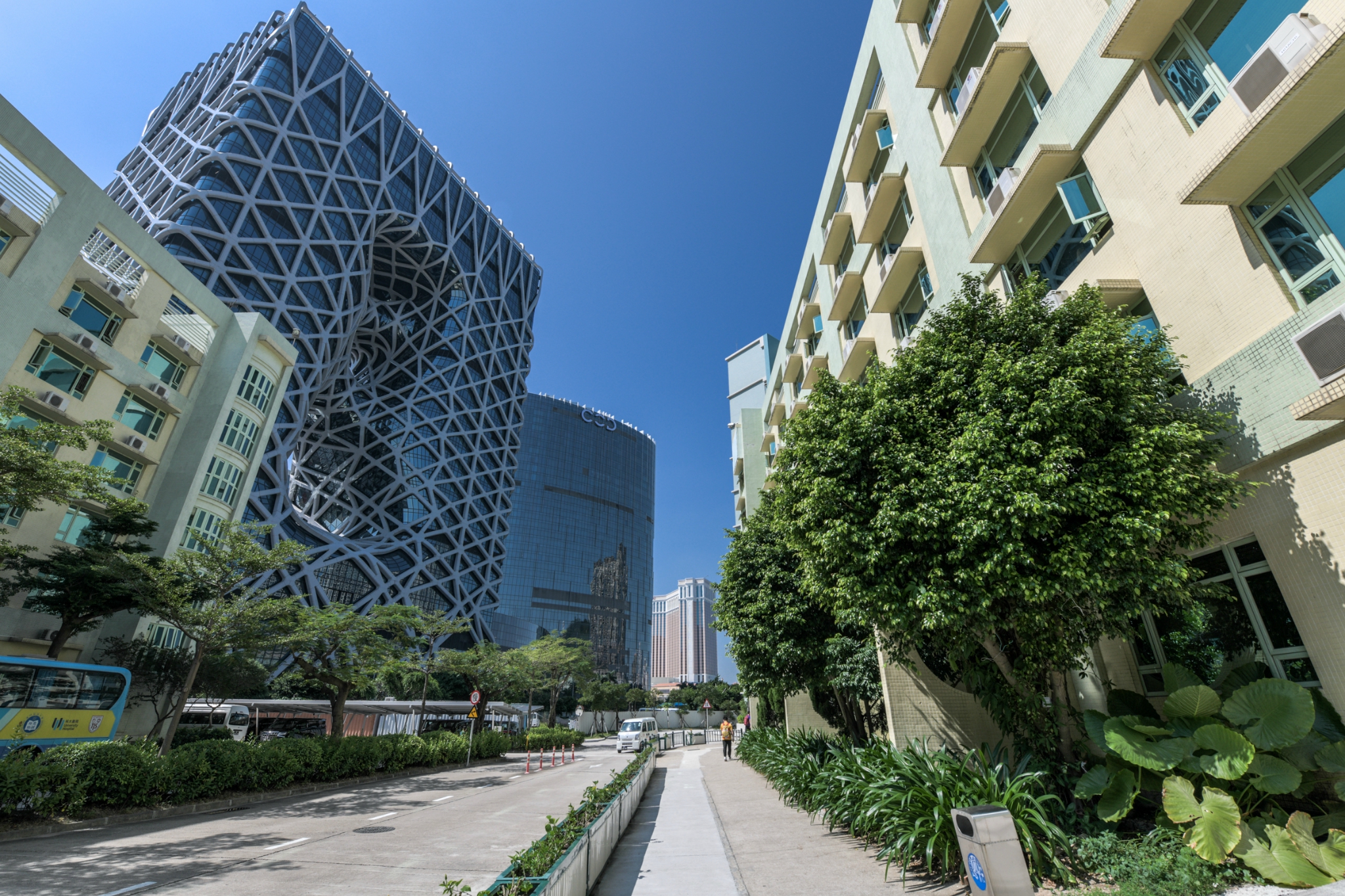 新濠天地的大厦与校园的教学楼形成如此强烈的对比,一边是学术性的大厦一边则是现代都市的大厦,这样的对比在整个澳门甚至全国都不多见的吧?