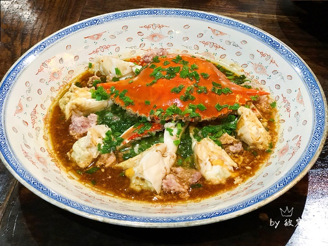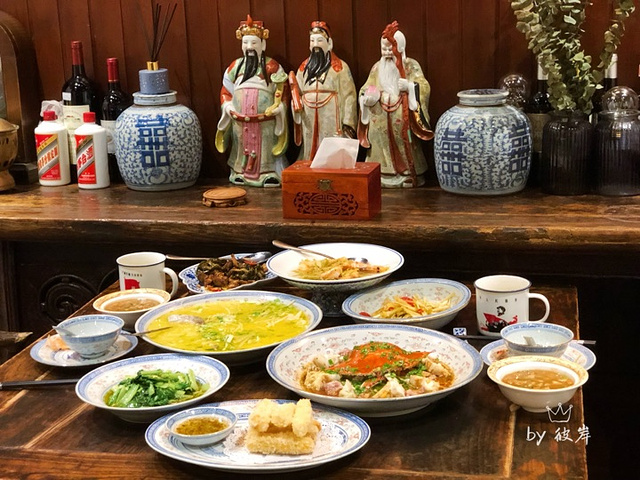 深秋钱塘行的第一晚晚餐定在这里。我想吃芋艿羹、朋友想吃糟排骨蒸白蟹,于是一拍即合。 这里是以海鲜为主打的私房菜馆,最好提前预定,大厨按人均配菜。确认了芋艿羹和白蟹都有,没有特殊忌口,于是坐等开餐。 菊花茶 以小时候的搪瓷杯端上来,喝一口雨后的冷意也跟着回温。 糟排骨蒸白蟹 白蟹饱满,蟹肉鲜嫩,糟排骨部位不大好,吃起来有点费力。 芋艿羹 是家的味道,不精细但香喷喷热腾腾。 萝卜丝带鱼 这道几乎都是我吃掉的,萝卜丝去腥气,带鱼鲜美,原汁原味。 凉拌马家沟芹菜 酸爽开胃,芹菜脆生生。 目鱼大烤 目鱼真心太咸了,葱经过长时间的浸泡已经没有葱的辛辣味道,细微地融入目鱼里。 蔬菜 很喜欢,感觉好久没吃到这样像蔬菜的蔬菜了,只余清新自然的蔬菜香。 桂花蜂蜜年糕 年糕实在欣赏不来 反而蜂蜜桂花酱倒是很喜欢。 这样一桌丰盛的晚餐,人均300左右,还是很值得。