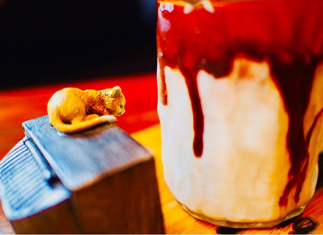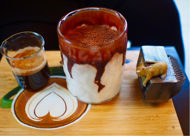 总是在小巷里发现一些不一样的小店,其实这家店还真不小。门面比较低调,水泥色为主。进入就感觉人气出来了,坐了挺久,等我出来天都黑了,还听到很厉害的打鼾声,纳闷了,居然还有人在咖啡馆的睡着。 既然水泥色为基调,那么就有很多水泥元素的东西,比如大门口的水泥做的钢筋砼管就成了一个vip空间,一位难求的那种,不断有人从里从外拍照片,我连蹭拍的机会都没有。 走入内也有些装饰,老式电话机、自行车、缝纫机、放映机、老钢琴、老式胶片机等等都作为一些小细节。也一边售卖服饰和鞋子,“无二”的logo很大。 楼上没有去,据说是民宿类的,也挺好,喝咖啡的也可以坐坐,坐坐的也可能下次来住一下。看到有双人套餐,点上试试,2杯咖啡+2块甜品。 无二咖啡是点招牌,颜值还不错,有专门的托盘,还有小喵,拍拍皂骗挺好看。喝上去有些寡淡。上层是可可粉,挂杯的应该是巧克力酱,下面是一层牛奶,混合一下就差不多dirty的感觉。 我喜欢风味拿铁,在玫瑰和榛果里我选了玫瑰,拉花图案还算可,喝完我又开始吃甜品,甜品的颜色很素雅,除了白色就是淡黄色。 榴莲千层,一层层的叠加,榴莲果肉在里面还能吃得出榴莲味。 白玉卷我觉得就不太对我胃,基本浪费了。拍个照打个卡,kill time个把小时还是可以走一个滴。