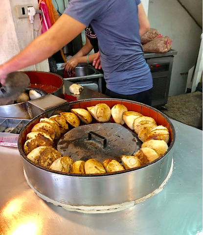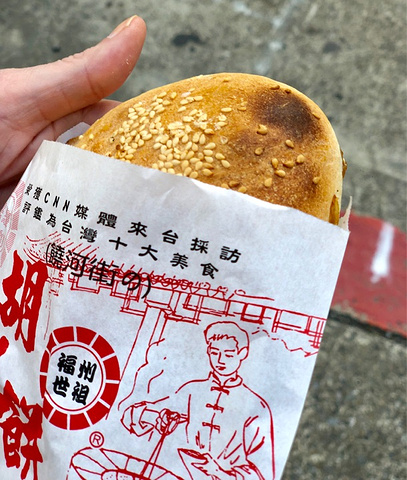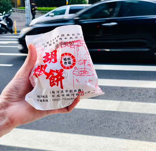 走过路过没有错过,去饶河夜市的时候看到也有,是连锁吧,不过走过一个路口转弯的地方又发现另外一家品牌的胡椒饼,正好有点饿了,但也不想吃的饱,那就买一只尝尝鲜。刚出炉的还很烫手。吃一口,里面有汁水。葱花的香夹杂着胡椒的辣,很过瘾。看做的时候有点像塞了馅的烤包子,吃一个觉得还不错的,不知多吃是不是会腻。里面的肉肉蛮多的,还有条状的肉,比肉包子的肉多且紧实。