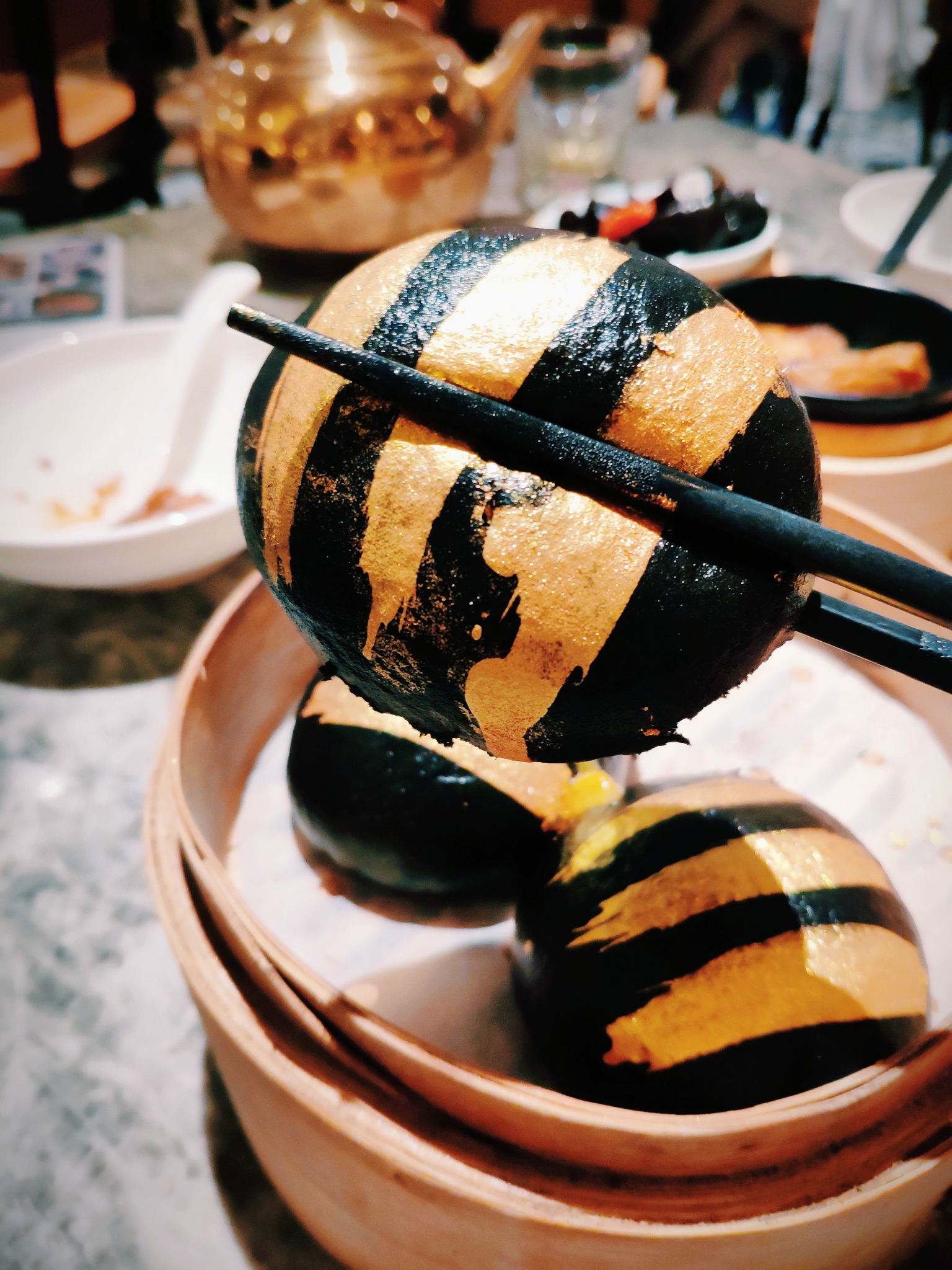 「黑金流沙包」果然镇店之宝,简直流沙包中的高富帅!饱满油亮的外形超好看,里面香浓的流沙香甜美味!