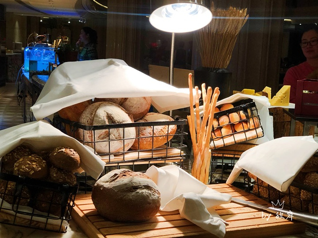 周末要吃个大餐,和回国休假的朋友在外滩玩,顺便吃个晚饭。凭着对华尔道夫的蜜汁好感,最后就决定在这里吃个自助餐。 环境一如既往的欧式奢华风,很多外国人也来这里光顾。 餐前面包 这里是以硬欧包为主,热面包配冷黄油棒棒哒。 刺身类很丰富,有三文鱼、北极贝、海螺、雪蟹脚等等。最爱 三文鱼,肥美鲜嫩,吃好一轮又去拿了一份。 牛排 牛排是现切的,厨师很大方的一切一大块,牛排5分熟左右,保留着牛肉的汁水,蘸点海盐和胡椒碎入口更棒。 羊肉 喜欢羊肉的可以试下这里的羊腿肉,格外鲜嫩,香气十足又不带膻味。 大闸蟹 现在吃蟹季每人还有两只大闸蟹。选用的都是3两左右的公蟹,蟹肉饱满,蟹膏满满。一口气把两只蟹都吃光了。 姜炒海鲜 海鲜可以根据自己喜好现捞,再由厨师烹调。姜炒海鲜、麻辣炒海鲜两种都试了一下,两种都是好选择。大虾、蛤蜊都特别新鲜,简单的姜炒就足够美味。 甜品 看过《疯狂的冰箱》一定会对里面的Robin主厨很熟悉,在百味园就能吃到Robin主厨的甜品哦~果然每一款甜品都嗲得不得了。 芒果慕斯蛋糕 细腻柔软,天然的芒果香气融入其中,颜值也颇高~简单的奶油蛋糕也做得特别好吃,蛋糕口感绵密,奶油是动物奶油,吃完一块忍不住又去拿了一块。