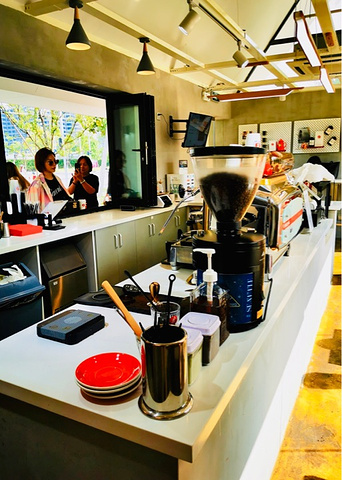 独立的一幢,离开地铁12号还挺近,冒出来的网红店吧,跟朋友一起扫一个。环境略有特色,利落简单的,很多妹纸门口拍照打卡,看看就好。里面也比较简单,没多大花头,找个了个靠窗的坐下,阳光直射有点晒,如果拉下窗帘么又很暗,所以还是晒晒吧。点了焦糖玛奇朵还有拿铁等,味道比较普通。甜品看上去还不错,也点了尝尝,胡萝卜蛋糕、椰子凤梨雪山和红丝绒树莓慕斯三款,咖啡和蛋糕有下午茶套餐组合,吃下来还是椰子凤梨雪山适合我的口味,比较清淡。