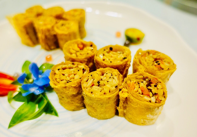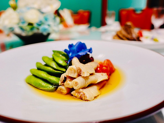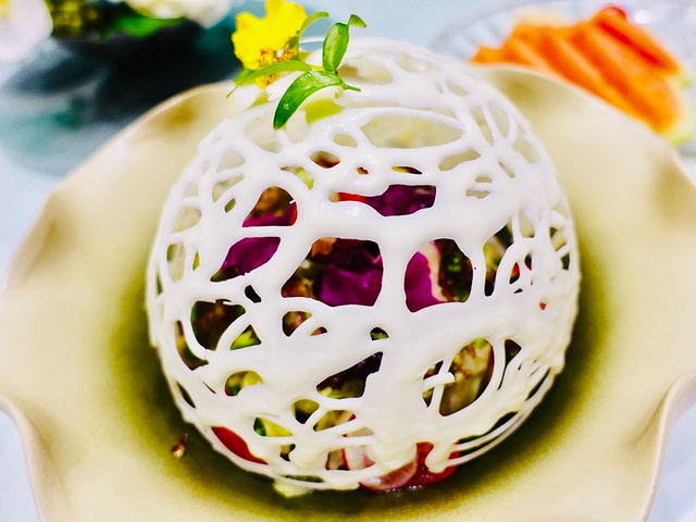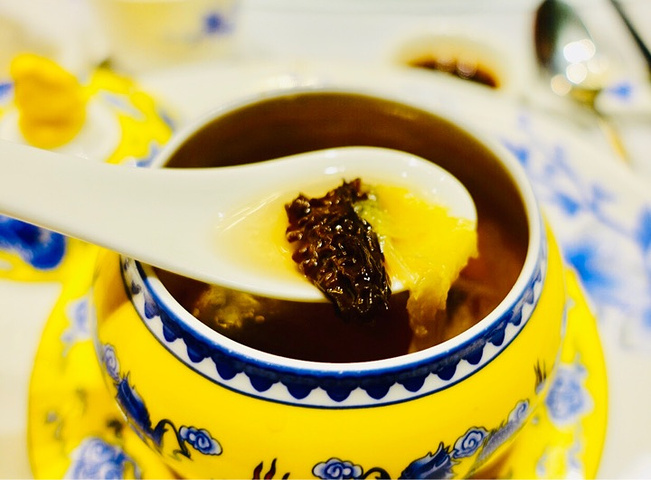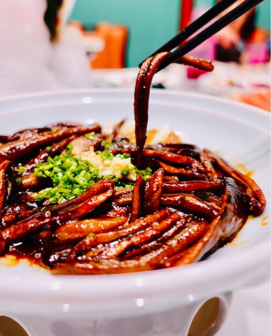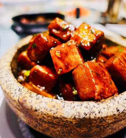 ✨邵万生 叫得出名的上海老字号,以此来命名的糟货,吃起来就是各种清爽。里面有鸭舌、鸡爪、毛豆、基围虾,拼在一起,每一种都可以尝尝味道,当然我的最爱就是毛豆[调皮] ✨腐乳鹅肝拼葱油饼 西菜的做法,但是中式的摆盘,鹅肝弄成一块玫瑰腐乳的造型,入口绵密,上面的jelly带有淡淡的红酒香。葱油饼像一个cake,也是蛮另类的搭配。 ✨招牌水晶鸡、✨琵琶鸭 必点水晶鸡🐔下面还有加温装置,随着温度的升高,一直保持着种鲜嫩入味的口感。琵琶鸭🦆一定要趁热吃,因为皮是脆脆的,没有鸭特有的膻味就比较能接受。 ✨老上海熏小黄鱼 一般熏鱼不是用青鱼就是用鲳鱼,这家用了小黄鱼,但酱汁的鲜甜口感是如出一辙的鲜甜,这种冷菜热做的做法很是心水[强] ✨阿婆红烧肉 现在生猪的价格真的是日益渐涨📈 一盘红烧肉整齐的放着,选的是上等的五花肉,肥瘦相间。边上还搭配了入味十分的笋干。这种浓油赤酱的做法就是本帮菜经典的体现。 ✨不一样的芋头 是放在石锅中,上来还滋滋冒热气!芋头用的是荔浦的芋头 ,油炸过吃起来表皮有点焦脆,芋头本身是非常香酥的,还有种假装吃肉的赶脚。 ✨不将就仙骨鱼 半条鱼的量也撑满了整个盘子。来自上饶的鱼🐟 ,骨头比较少,没有浓烈的土腥味,简单的豉油清蒸就很好的带出了鱼肉的鲜嫩。 ✨老码头文蛤烩豆面 刚从台州打卡回来,对新荣记的豆面还念念不忘。这家就是把海葵换成了文蛤肉,吕四文蛤肉很Q弹,豆面入口柔且吸附了海鲜的自然鲜味,安利。 ✨家烧味的海鲜杂鱼 真的是一锅鲜,白鲳、九肚鱼、海虾等,正逢东海开渔,特地请了名厨坐镇,吃到的都是鲜味本味。 ✨素佛跳墙 素高汤清炖,羊肚菌是主角,装盘有皇家范,喝了没负担,把纯素汤做好就看火候了! 菜式的品种很多,融合了不少接受度高的菜肴,是家颇具规模的连锁店,出品方面都较稳。
