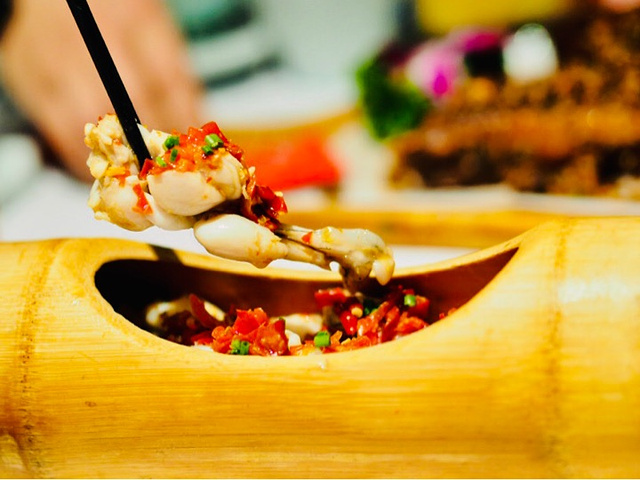 大静安最喜欢的一片区域就是这里,云集各种好吃的。最近连绵☔️,就想着吃点重口味来调剂下心情!幸亏朋友到得早,否则也是门口等位的节奏!若是不下雨户外的坐位似乎更惬意随性!室内基本满座,也是,每次路过我都会🐱一眼👀 宾客满棚,开了也快20年了吧,生意依旧🔥肯定是有道理的!室内空间安排得很紧凑,有若干镜面延展视觉上的空间感,有两个包房,人气是真的旺! 饮料:🍋薏米水、百香果冰茶等果味系列不错喝,前者带点酸,祛湿效果一级!后者非常爽口解辣! 冷菜以开胃为主,椒麻手撕鸡的鲜嫩、蒜泥白肉的口感醇厚不腻、擂豆角拌烤麸的鲜香都留下不错的印象,挺显精致! 几道必点热菜吃得大呼过瘾! 🥢茶油剁椒大鱼头 大鱼头🐟真的是量大,2000g左右的分量可以多叫几个朋友一起分享!上面红红的🌶️酱盖满了一层,鱼头蒸的时间很精准,入味且鲜嫩都体现出来了!就算不太能吃辣的我也忍不住多吃了几块,最后还加了份手擀宽面,吸附了酱汁真的是好吃得飞起! 🥢孜然手抓排骨 🐷的肋骨选的部位可以,两块起售,每一块都有着匀称的长度和宽度,戴上手套大快朵颐!肋骨外层撒了一把孜然起到画龙点睛的效果,酥脆香嫩还有汁水! 🥢咸蛋黄炒大虾 一半是🍤一半是秋葵,荤素搭配倒也相得益彰!外面裹了一层咸蛋黄,炸的火候很棒,应该是吸过油了,吃起来完全不腻,鲜香脆口的咸蛋黄衣犹如吃天妇罗那般,薄厚度刚刚好,虾仁也够大只,🈵️足!再来点秋葵,带点粘连感很特别了! 🥢竹筒牛蛙腿 一个竹筒里容纳了四只牛蛙,那就是有八条牛蛙腿,量还真是不少!蛙腿各个像练过gym,搭配特制的剁椒酱,鲜嫩度又⬆️几个level,底下还铺了几个软糯的芋奶,也蛮入味的! 🥢臭豆腐肥肠煲 重口味系列,大肠洗的很干净,没啥膻味,很有嚼劲!臭豆腐和鸭血在一起滚煮、我更喜欢鸭血的鲜嫩,好好吃! 🥢上汤米苋 家常的一道菜,记得小时候夏天吃得最多的就是红米苋,红色的汤汁跟🍚搅拌下能吃更多[调皮]上汤的做法让米苋更软糯,加了碎皮蛋等,鲜味也🆙 🍲湘西酸萝卜扁尖炖老鸭 一看汤品的颜色就知道是一锅用心炖的好汤!酸萝卜的酸味都融入汤里,🦆汤祛湿除燥,扁尖脆口,喝了两碗让我更开胃了[奸笑][笑哭] 🌟红糖糍粑 满满10根,红糖➕糯米做的小吃虽然也是经过油炸罢特也是吃不出油腻感! 店还是老的好,口味在线,服务舒心!