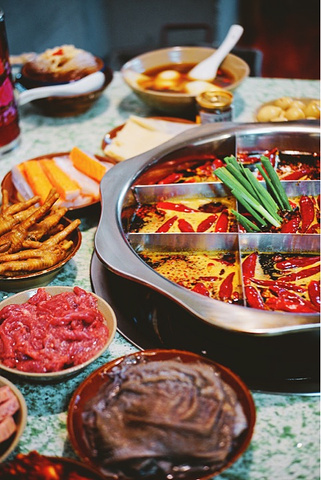 资格重庆老火锅 为了夹菜不打挤,就没有放九宫格 想体验正宗锅底的可以点九宫格锅底 要的中辣锅,刚开始还放狠话说不辣 后面越吃越辣,而且没有蚝油,p我一般喜欢放点蚝油综合下辣味! 点了冰汤圆物理解辣,效果非常好,哈哈哈~两个人吃一碗都够了,冰冒冒多,比冰店的甜品还好吃! 火锅锅底自然不燥 吃完回家再冰火两重天的交错下也没有闹肚子 食材是真的很新鲜了 推荐:麻辣牛肉、现炸酥肉、广味小香肠、特质五餐肉 成都人气火锅