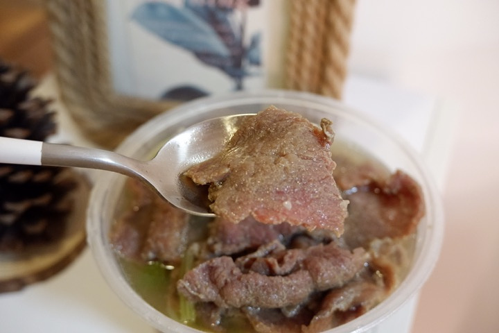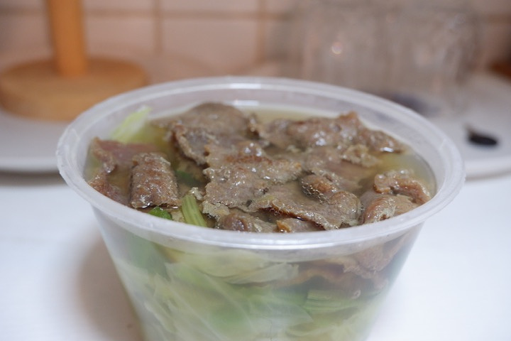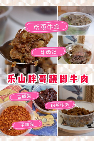 乐山名菜-跷脚牛肉 虽然不去乐山,但据说在成都就能找到比较正宗的跷脚牛肉,而且还是必吃榜上的,本来吧,距离我住的地方很近,可是我这个懒人,一到家,就不想动了,那就点外卖吧。 恰好,乐山胖哥跷脚牛肉可以点外卖,那就很棒了,点一份在家吃不错。 🐮牛肉汤(牛肉+莲白)少了说好的泡菜 如果去店里肯定是点一锅汤的,里面主要就是牛杂、基本上什么都会有,但是我没有点一锅的,他有单份的牛肉汤,那就单份牛肉汤吧。 🌟亮点:汤是真的好喝,据说最初的跷脚牛肉是种草汤药,那就是药膳了,不知道现在还是不是,只知道汤热乎乎的时候很清澈,很鲜美,冷了就不清澈了,上面一层白色厚油、可见这个汤是比较油腻的。 因为点的只是牛肉,故没有其他的牛杂了,牛肉稍微老了一点,和外卖过来也有关系,去店里吃会嫩一些。 🍲粉蒸牛肉 (干净最重要) 他不同于粉蒸猪肉,不是剁烂的牛肉,还是有点一块一块的,也比较老,嚼不烂;在里面有一根头发,嗯~瞬间就失去了食欲。 乐山胖哥跷脚牛肉(东风路总店) 📍坐标:东风路北一巷新1号附11号 🚌交通:地铁🚇玉双路站A口 🌈营业时间:11:00-14:00/17:00-21:00 🎀服务:接单、出货很快速,包装的一般。