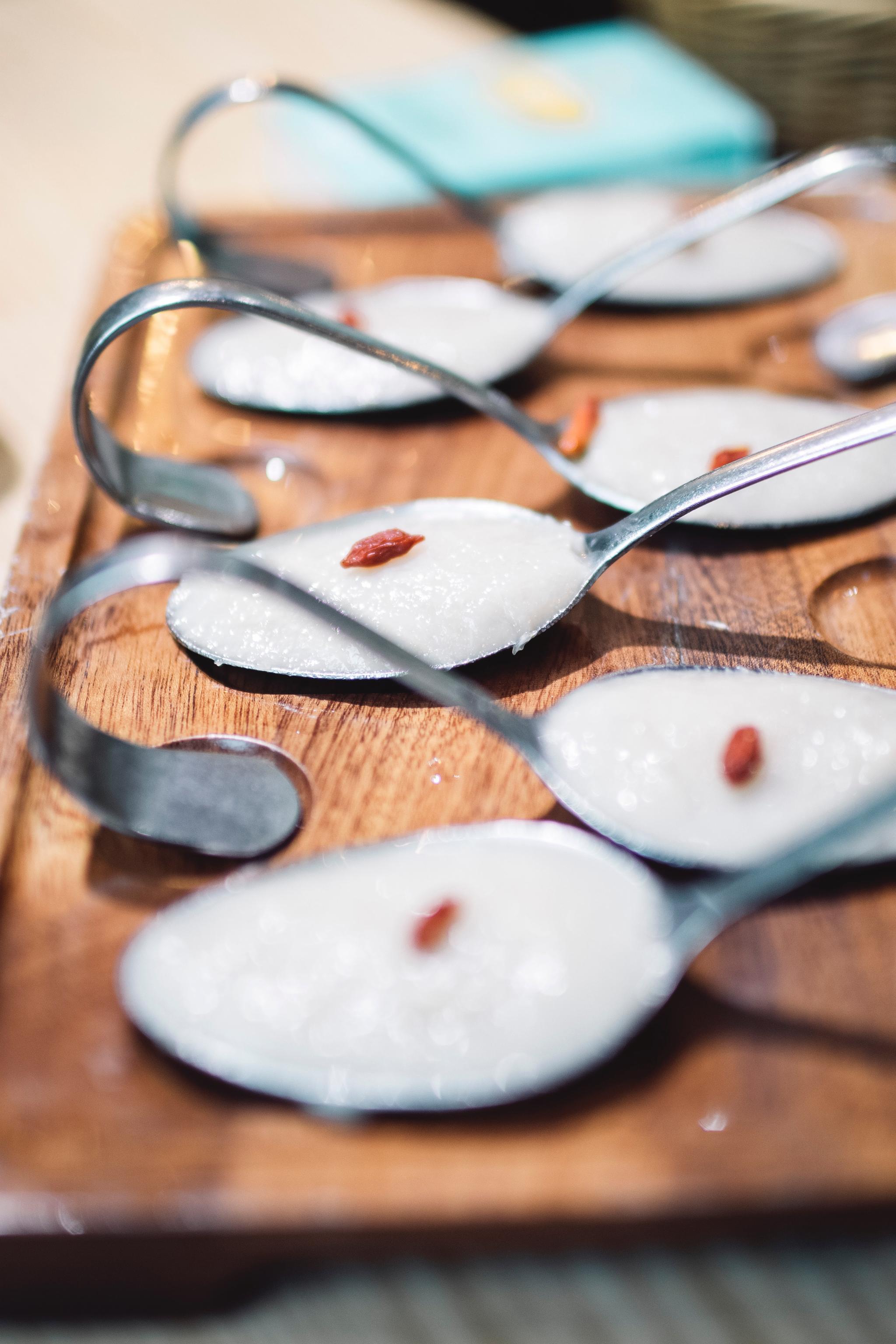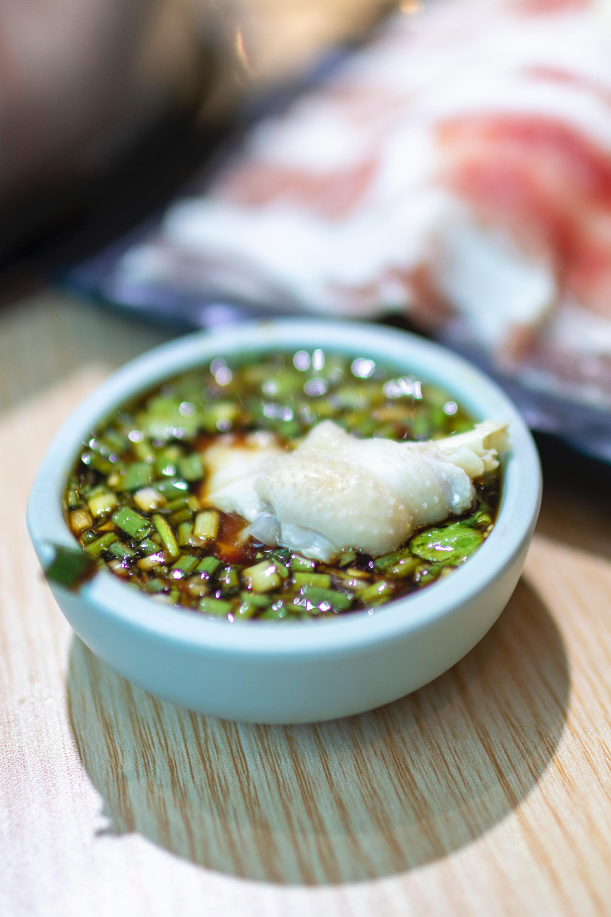 嗲嗲的椰子鸡蘸上独家秘制的酱料,可以迅速的融入到嫩滑的肌肉当中,味道好极了。