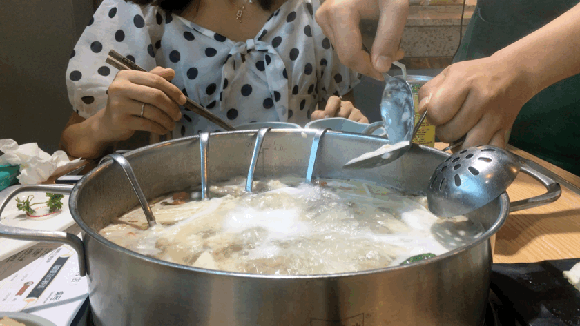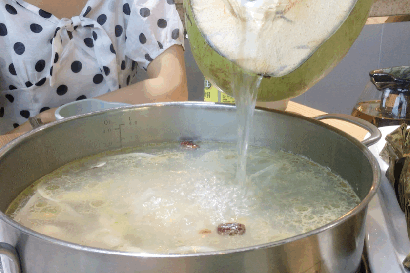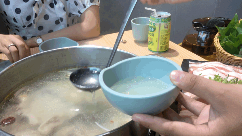 每一锅汤底满满三颗椰子汁,清新中弥漫着淡淡的椰奶香甜,服务生说这椰汁多了太甜,少了太淡,三颗刚刚好。