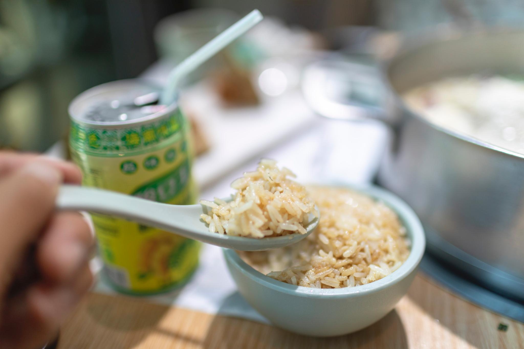 最后再来一份海南鸡油饭,以海南文昌当地的白切鸡为食材,同时配以鸡油和浸鸡水烹煮的米饭。
