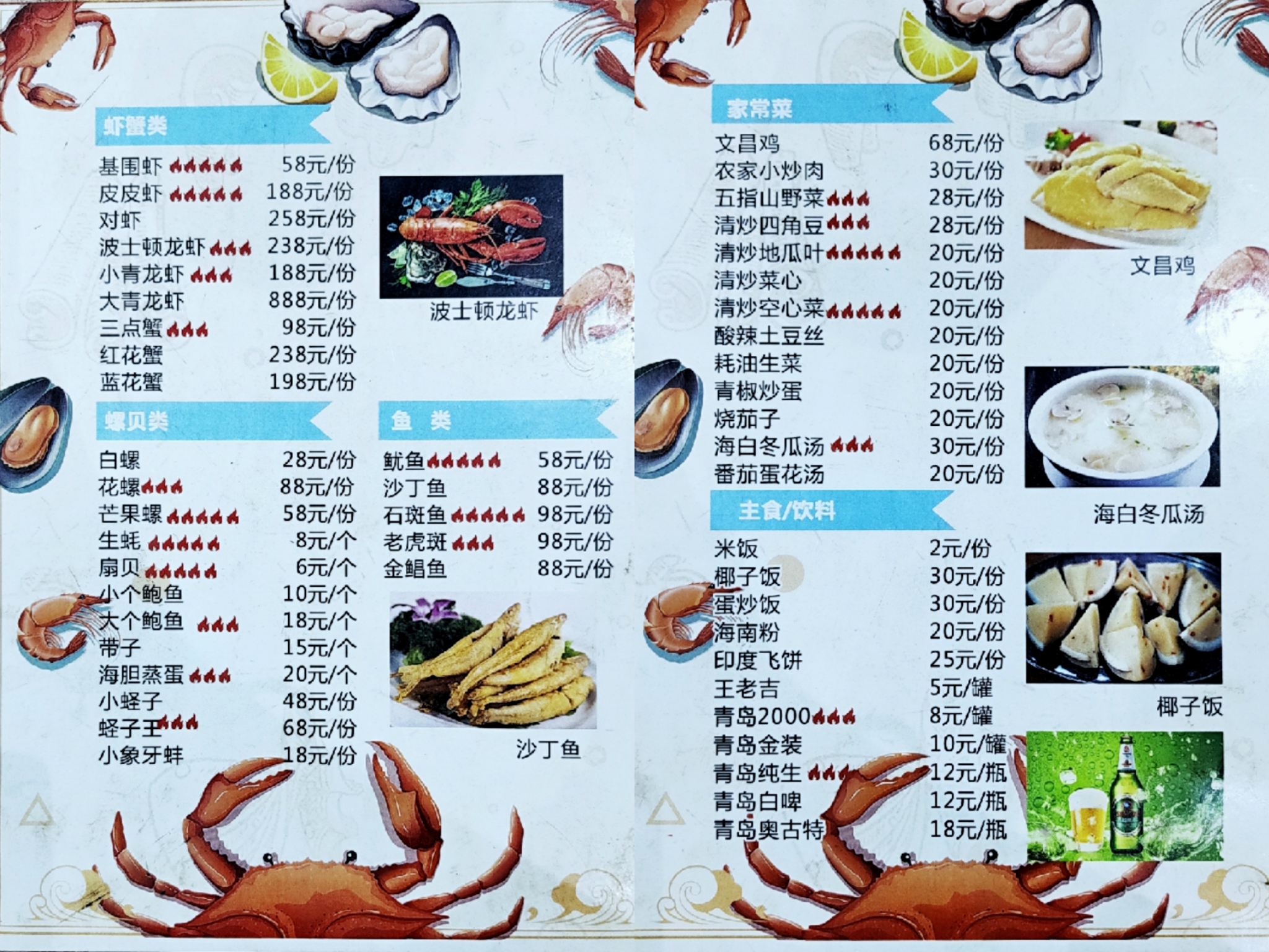 推荐菜品:椒盐皮皮虾、姜葱炒蟹、蒜蓉蒸鲍鱼、海胆蒸蛋