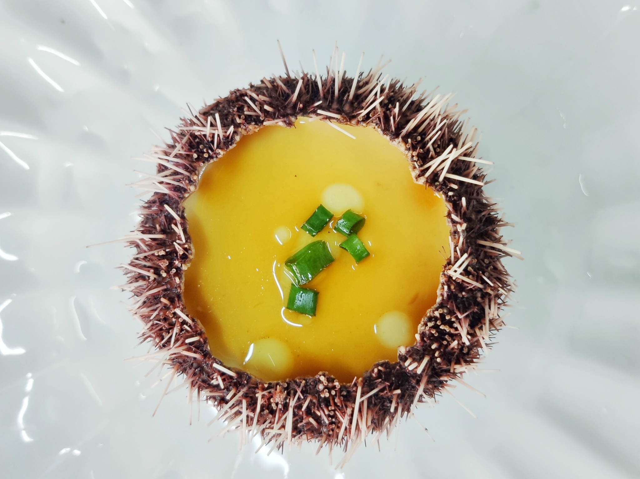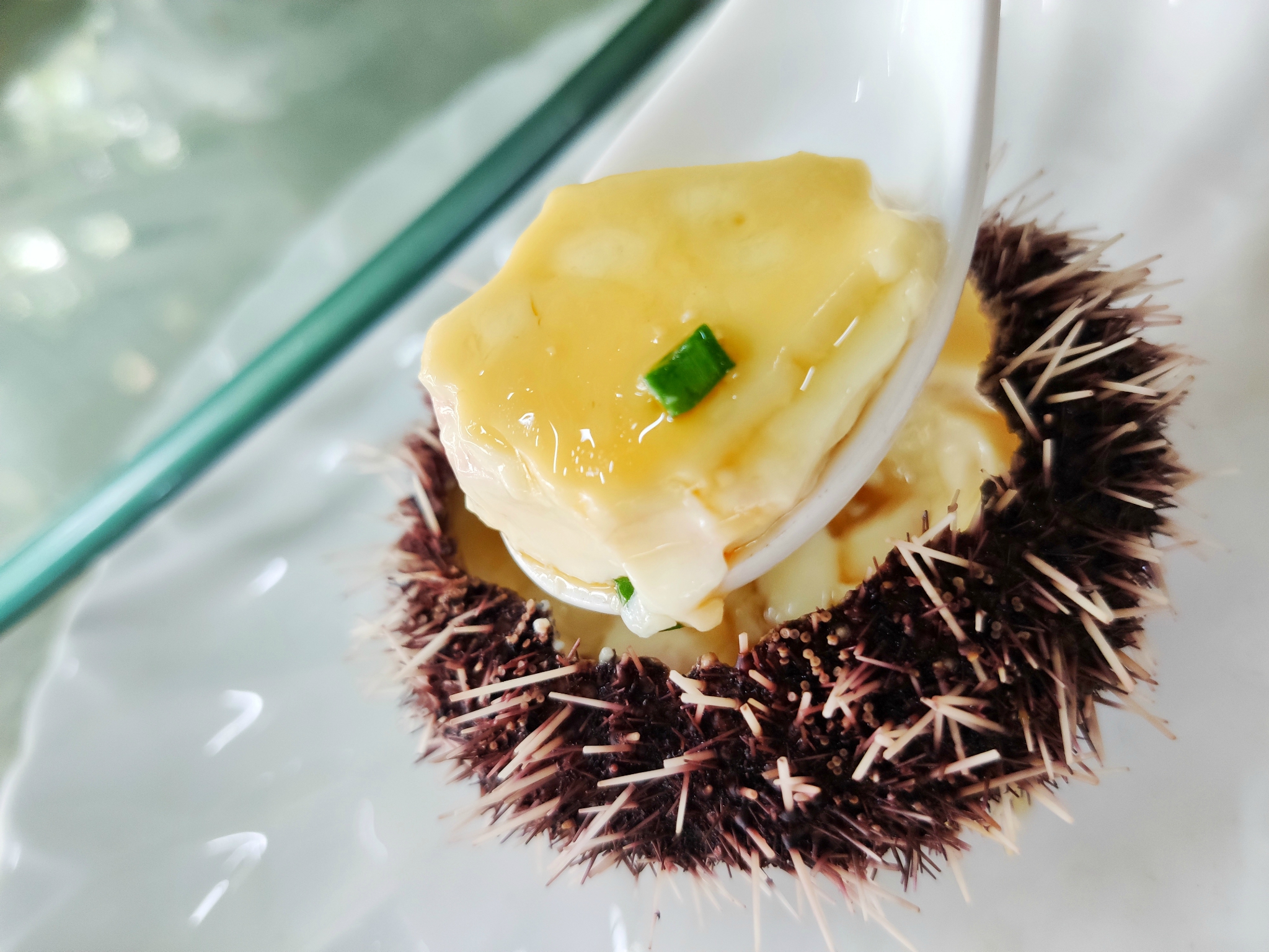 海胆除了生吃外,和鸡蛋一起蒸也是很不错的哦!矜贵的海胆黄有微微的咸鲜味,与蛋羹融为一体的鲜美溢满舌尖。